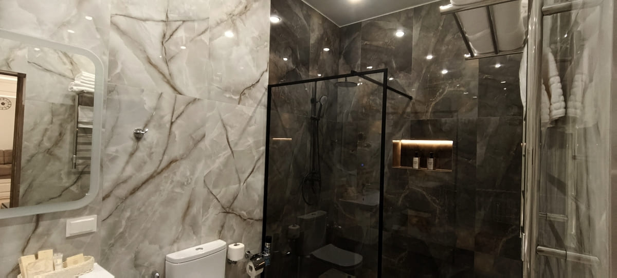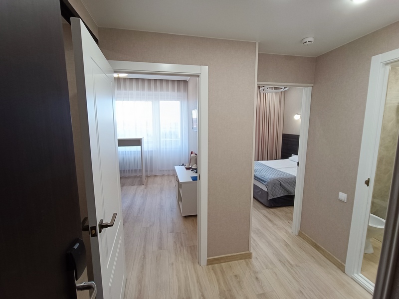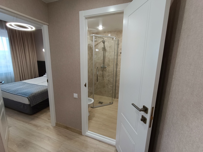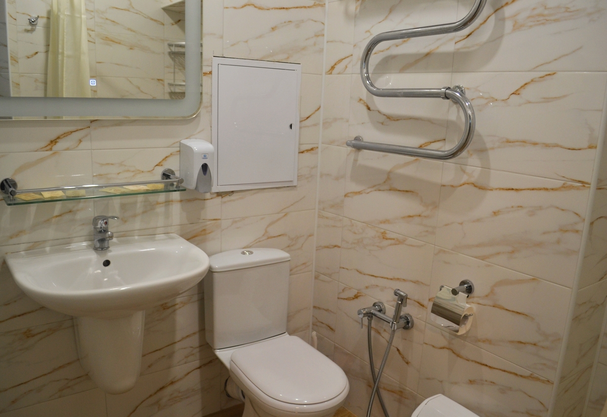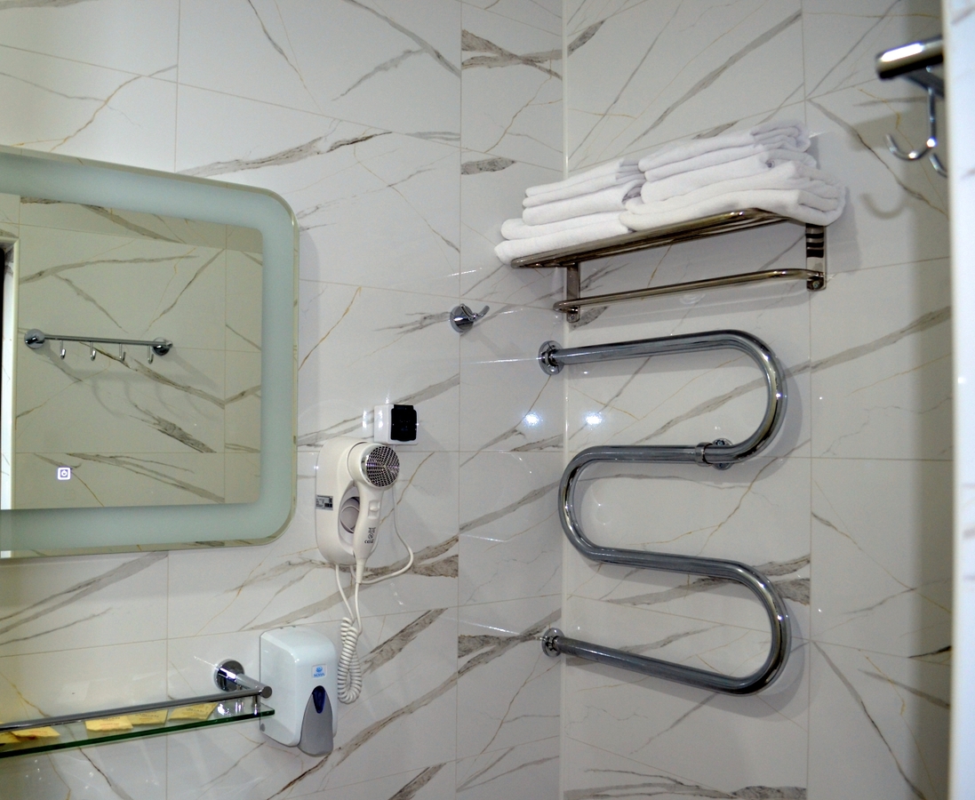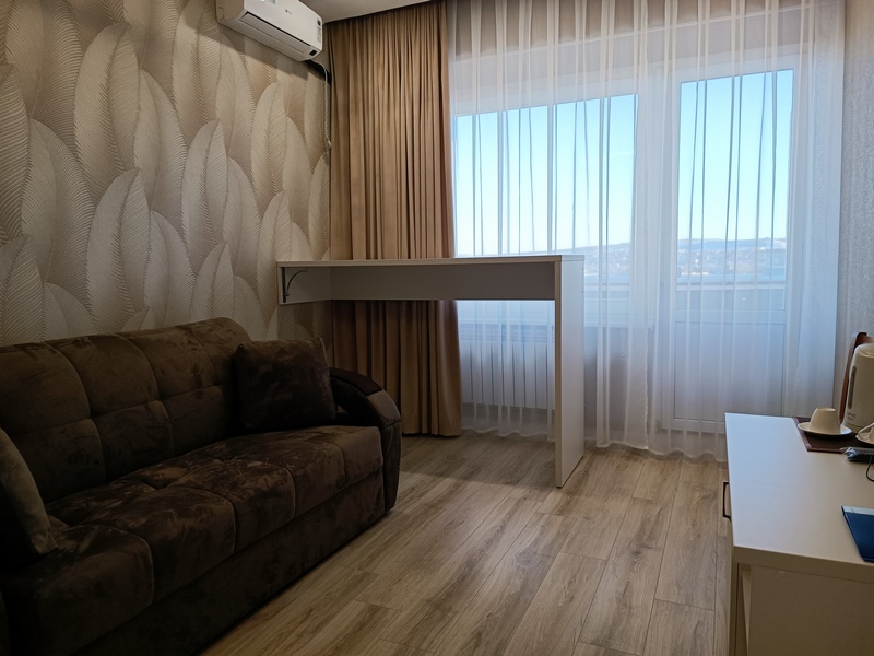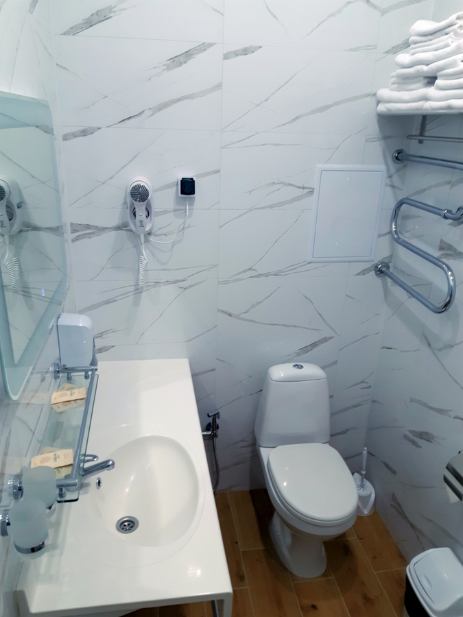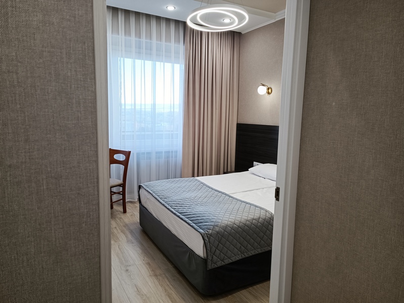 Комфортные номера: свежий ремонт, кондиционер, Wi‑Fi, холодильник, чайная станция, фен, косметички, ежедневная уборка