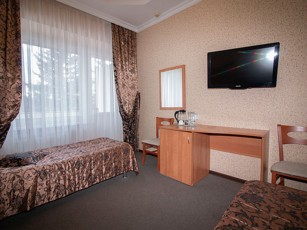 Инфраструктура размещения представлена пятью корпусами, из которых два — это коттеджи с номерами класса «Люкс». Предусмотрена отдельно стоящая столовая и лечебно-диагностический корпус. Доступ в столовую из основных корпусов (этажность 4– и 7– этажей соответственно) для удобства выполнен в виде крытого перехода без выхода на улицу.