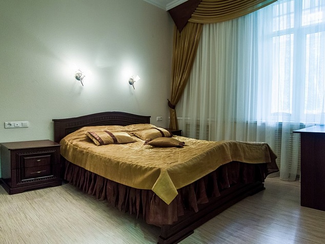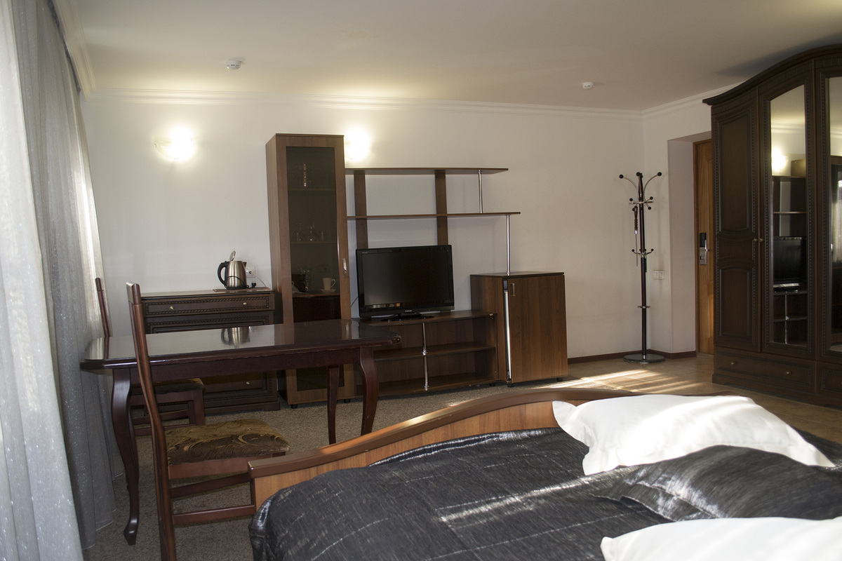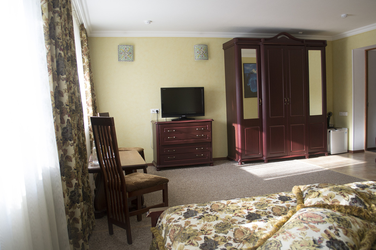 Наличие номерного фонда различного уровня, начиная со скромных «Студио», заканчивая «Люкс-коттедж», позволяет подобрать для каждого отдыхающего максимально подходящие условия проживания с учетом имеющегося бюджета и предпочтений. Во всех номерах предусмотрен санузел, есть вся необходимая мебель, TV, холодильник. В номерах более высокого уровня предусмотрены сплит-системы, есть телефон, чайник.
