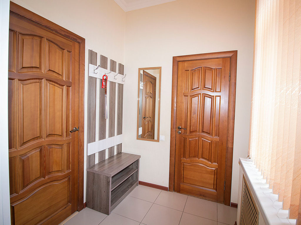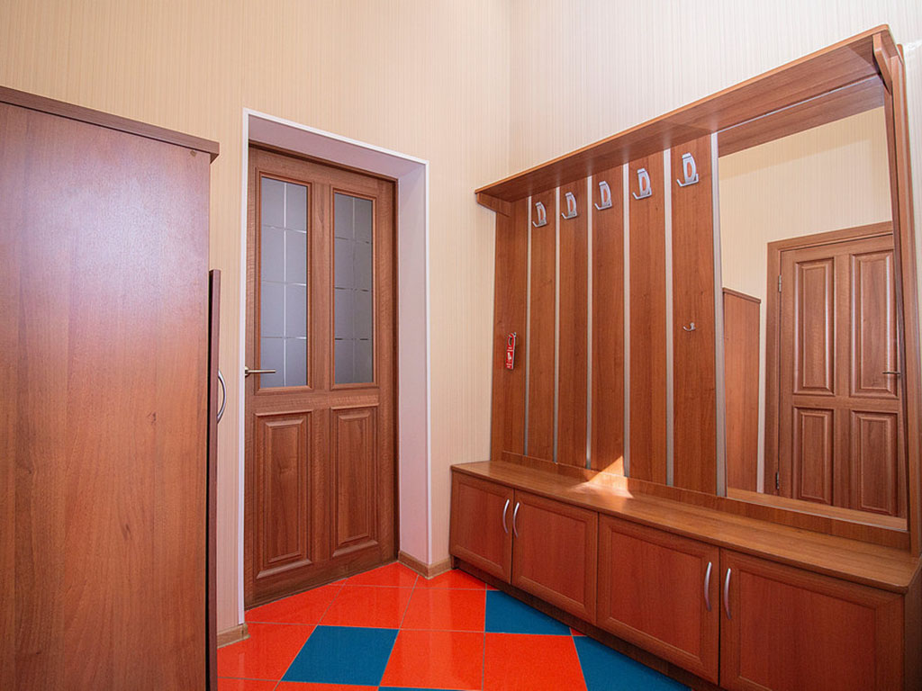 Мебель: вешалка, зеркало, кровать двуспальная, стол, стул, тумба, шкаф.