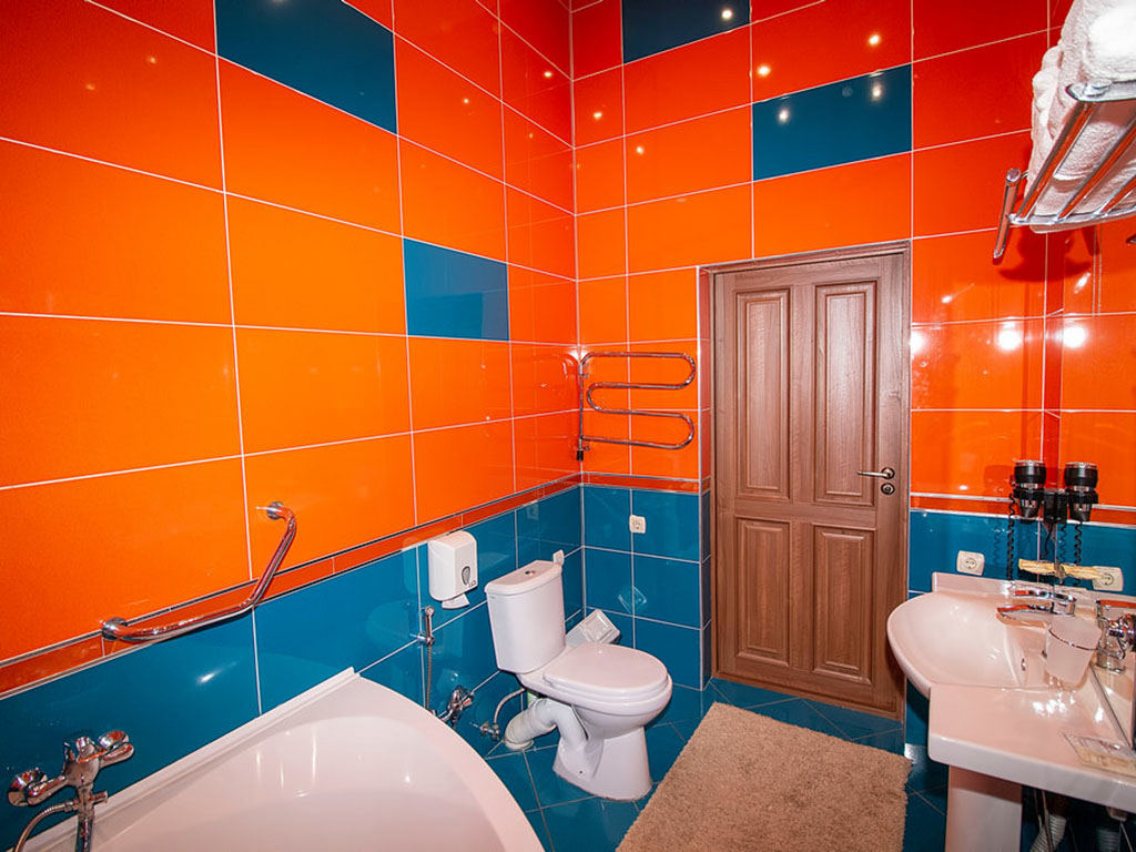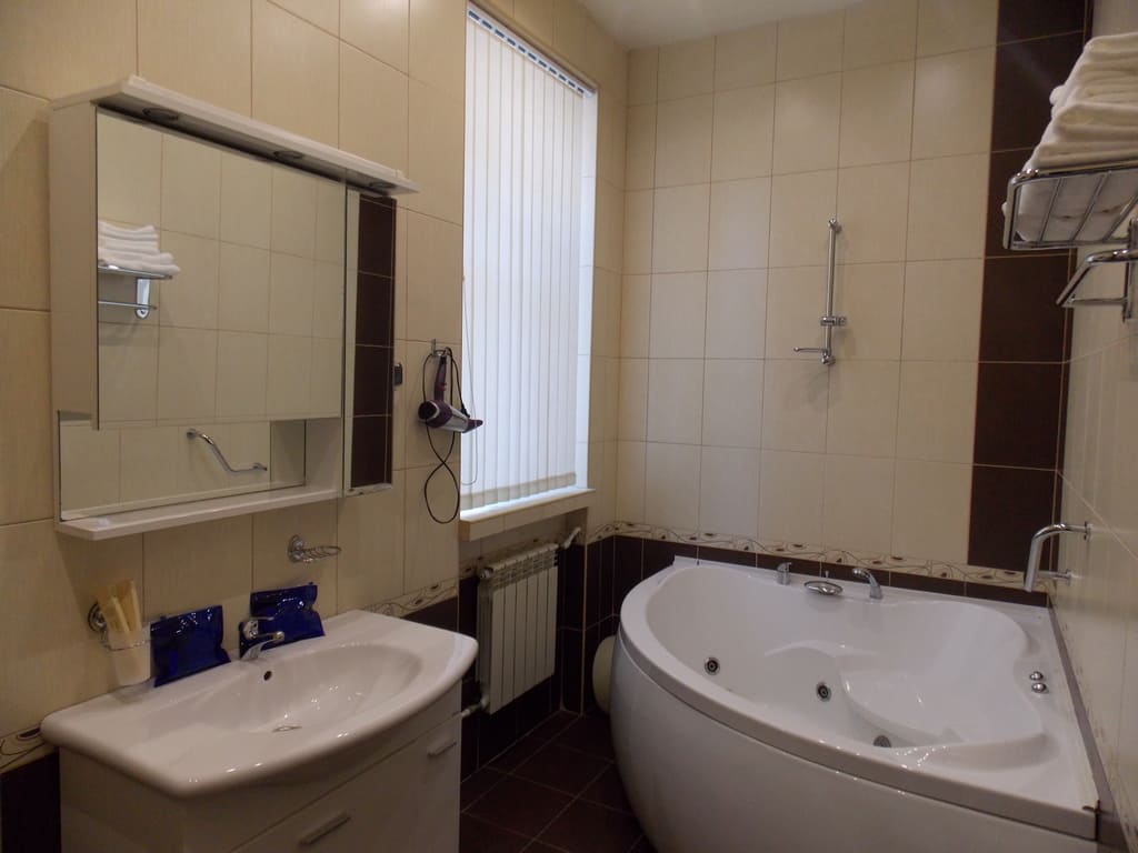 Санузел: с джакузи, туалетные принадлежности, фен.