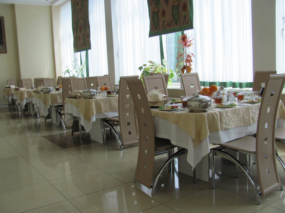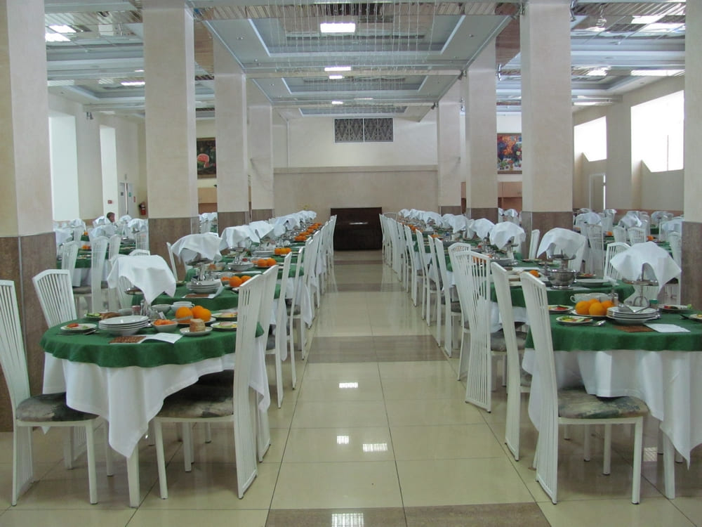 Питание: три раза в день по системе «меню‑заказ» в просторных залах. В рационе — фрукты, овощи, кисломолочные продукты, доступны четыре диеты