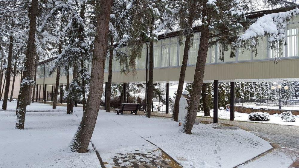 Уют и тишина: санаторий расположен в спокойной части курортной зоны, 7–12 минут пешком до бювета, парка и грязелечебницы