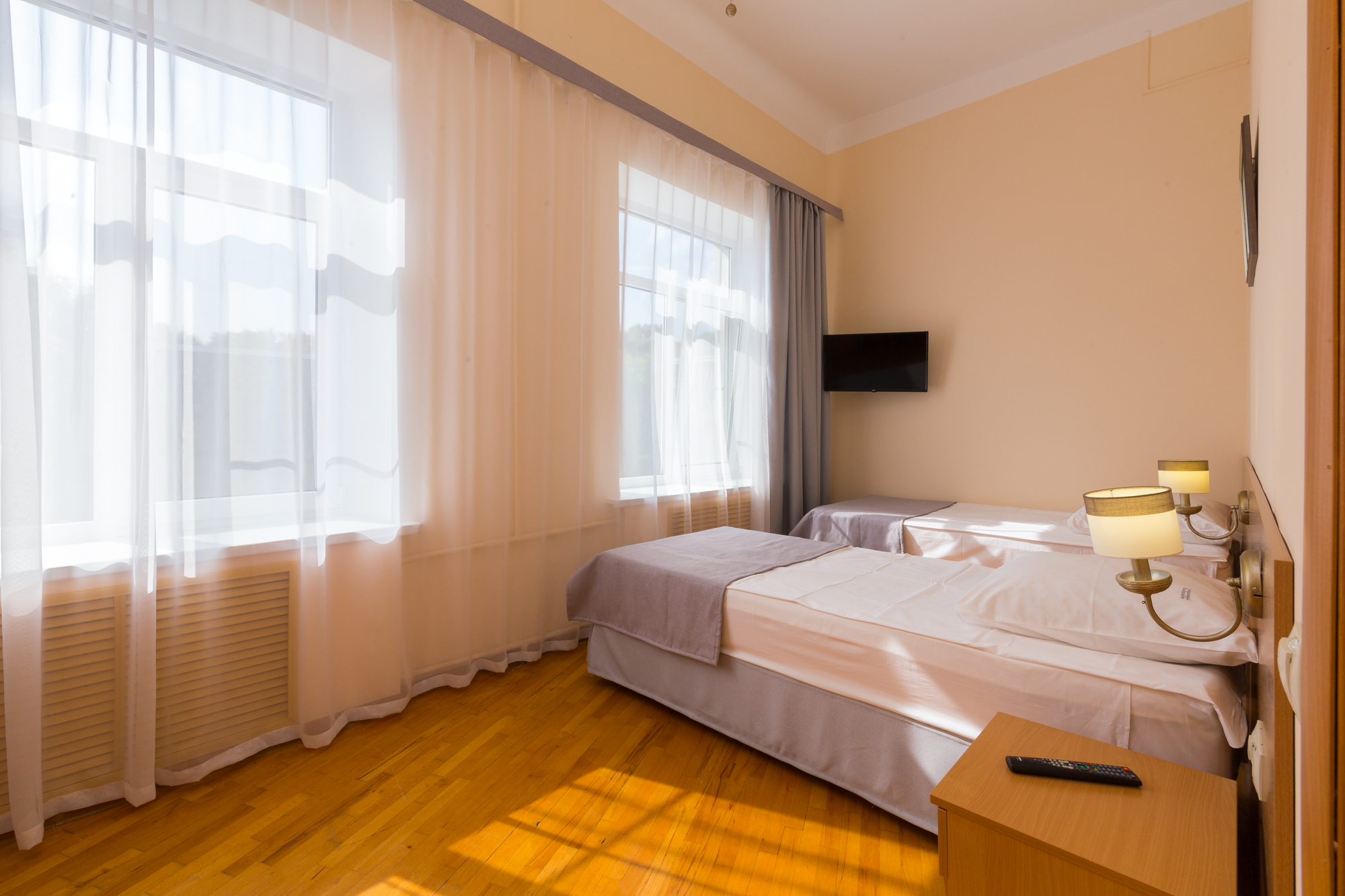 В санатории «Надежда» предусмотрены номера различных категорий — от стандартного до двухкомнатного номера Люкс. В каждом номере есть вся необходимая мебель и бытовая техника, душевая комната и туалет.