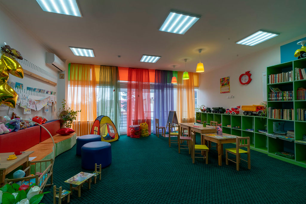 • Дети: приём с 4 лет. Педиатр, игровая комната с воспитателем, площадка на улице