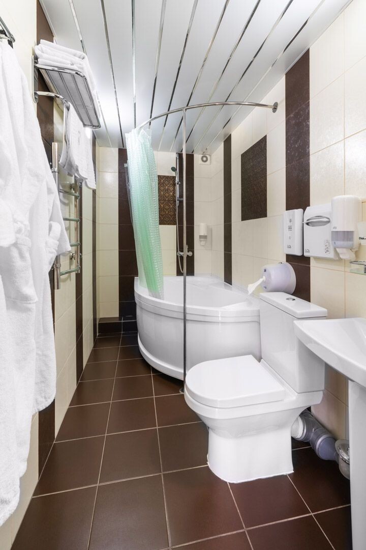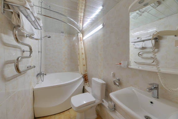 Санузел: с ванной, с душем или ванной, туалетные принадлежности, фен.