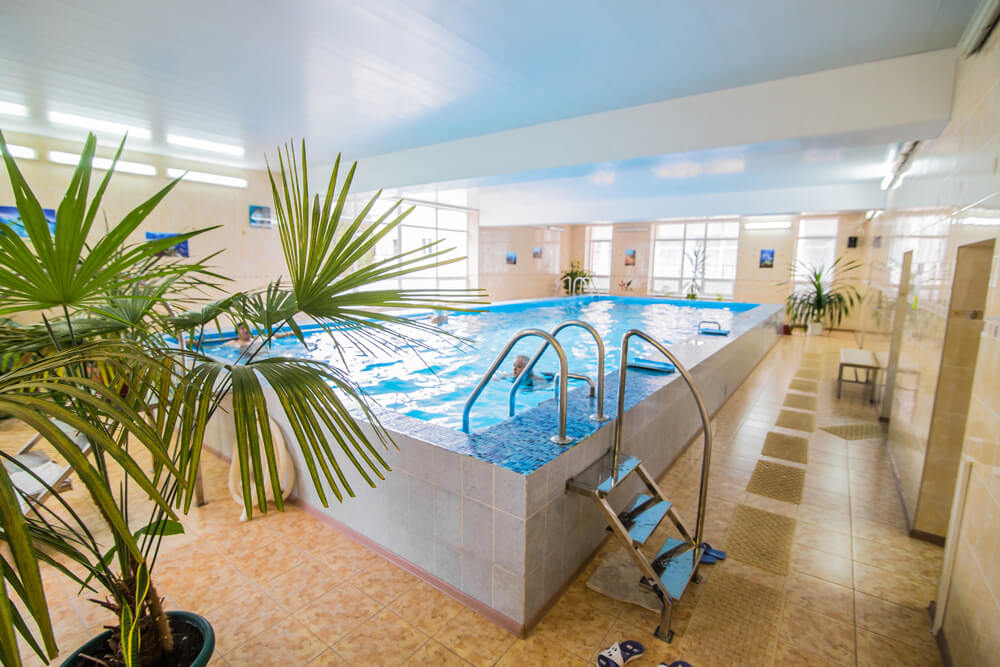 • Бассейн: крытый 12×5 м, посещение включено во все путёвки. Проводятся ЛФК и аквааэробика