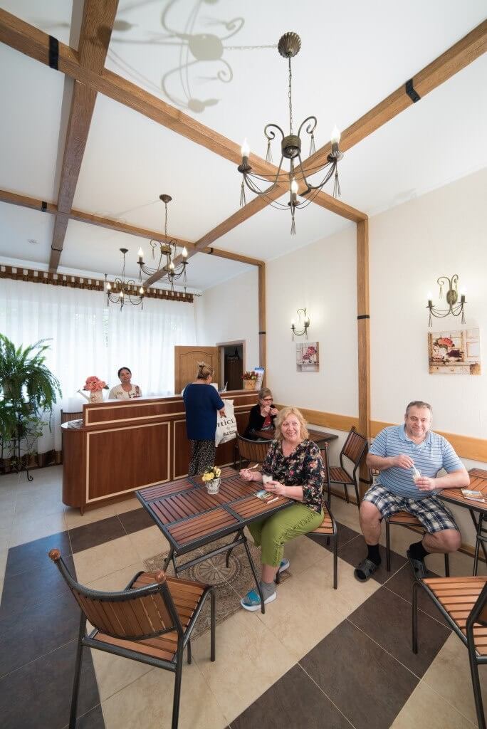 • Медицина: 4–6 процедур в день. Врачи 14 профилей, включая гериатра и ревматолога. Есть стоматолог, лаборатория, УЗИ, 19 видов физиотерапии, 20+ ванн и 5 душей, включая подводный массаж