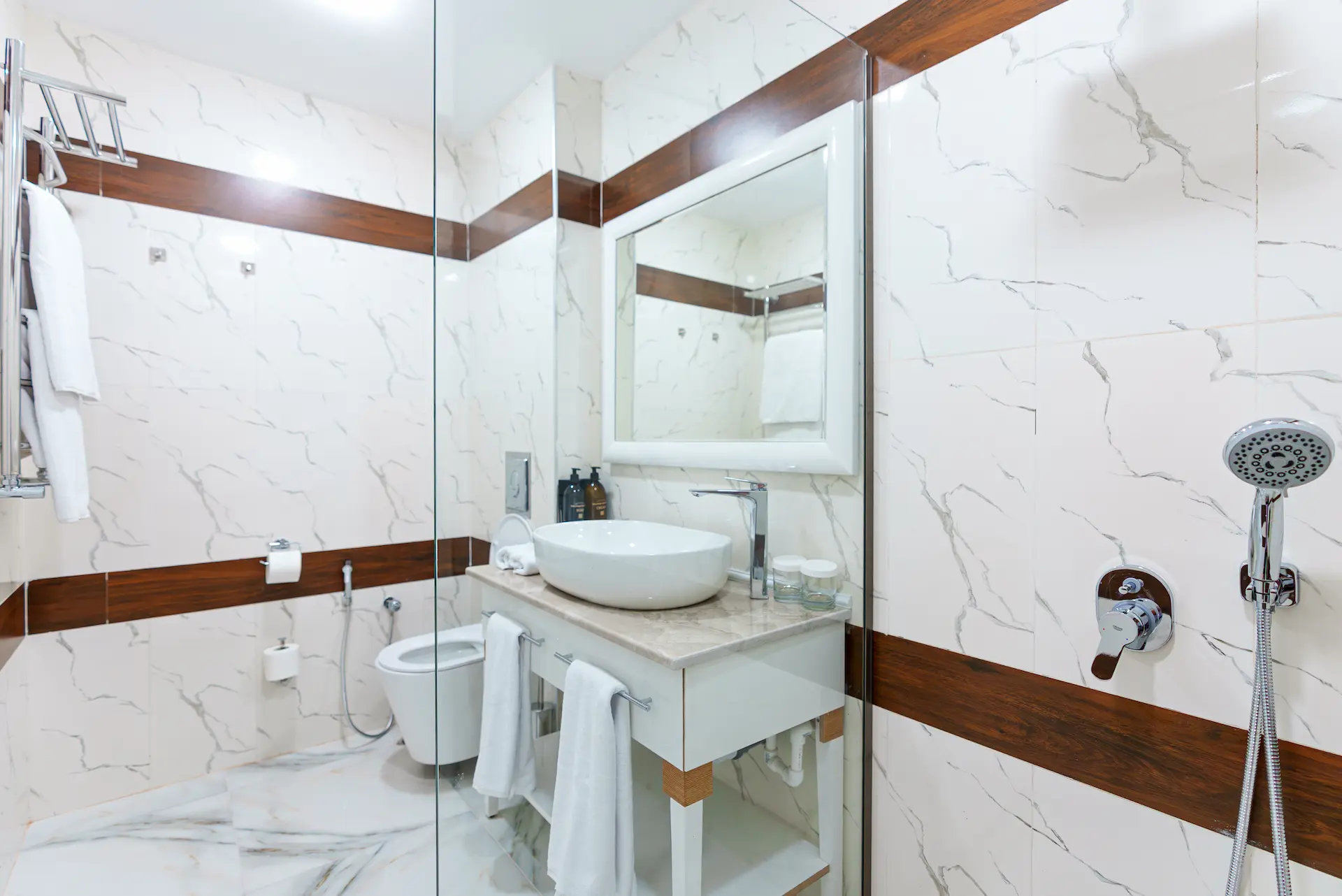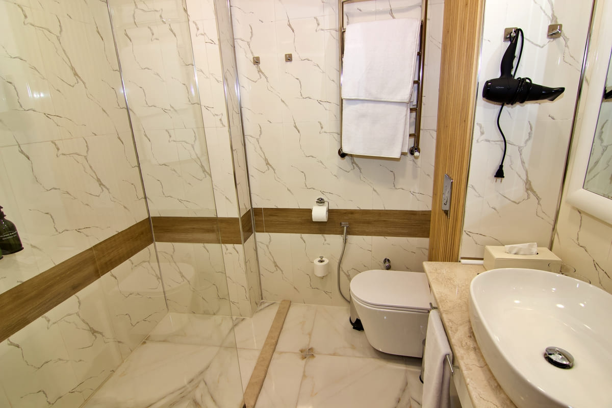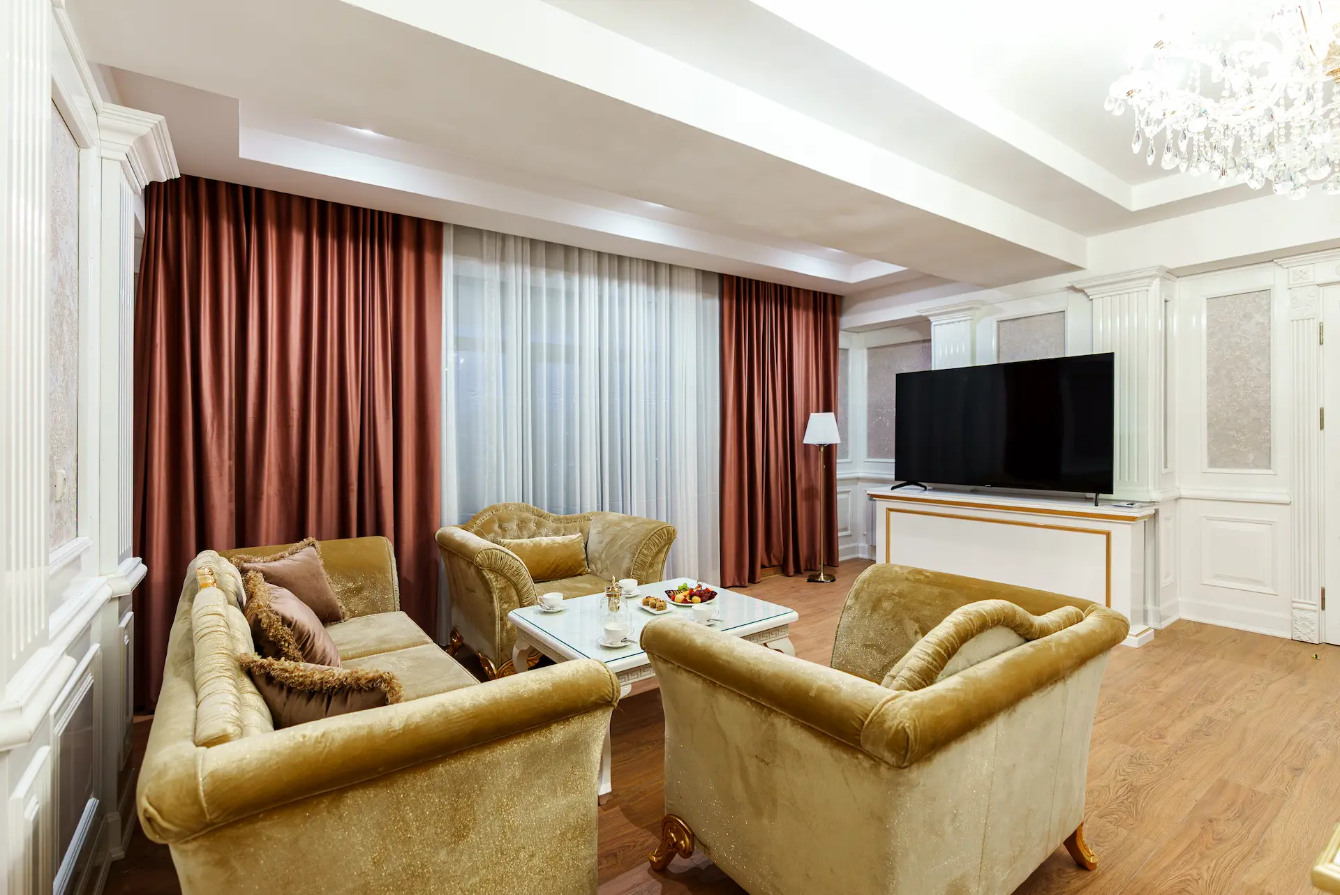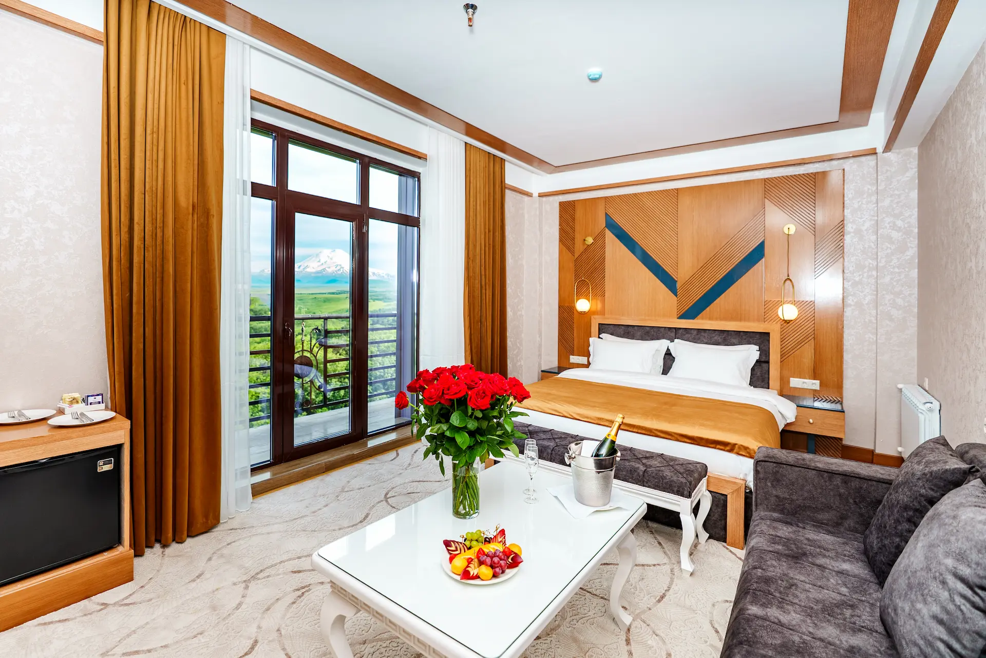 - Джуниор Сюит (32 м²) — уютный номер, созданный для отдыха и восстановления сил. Оснащён всем необходимым для комфортного пребывания, идеально подходит для релаксации.