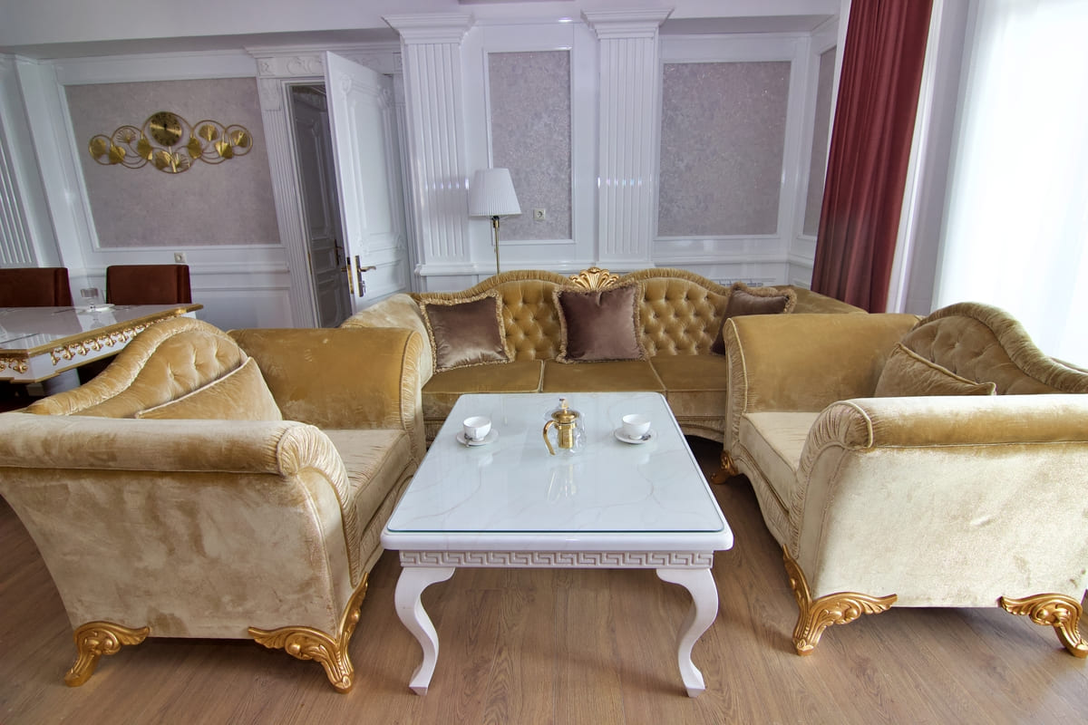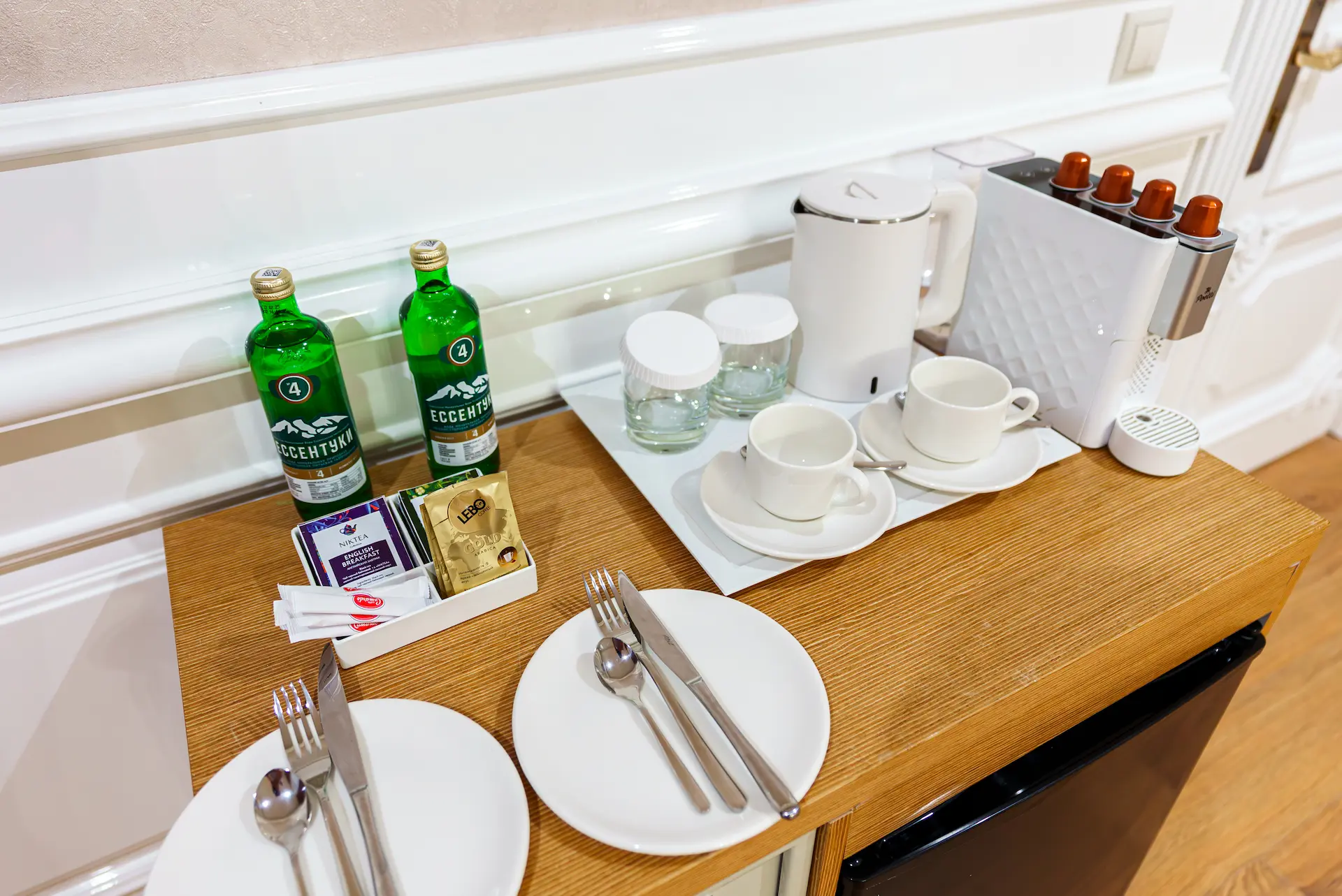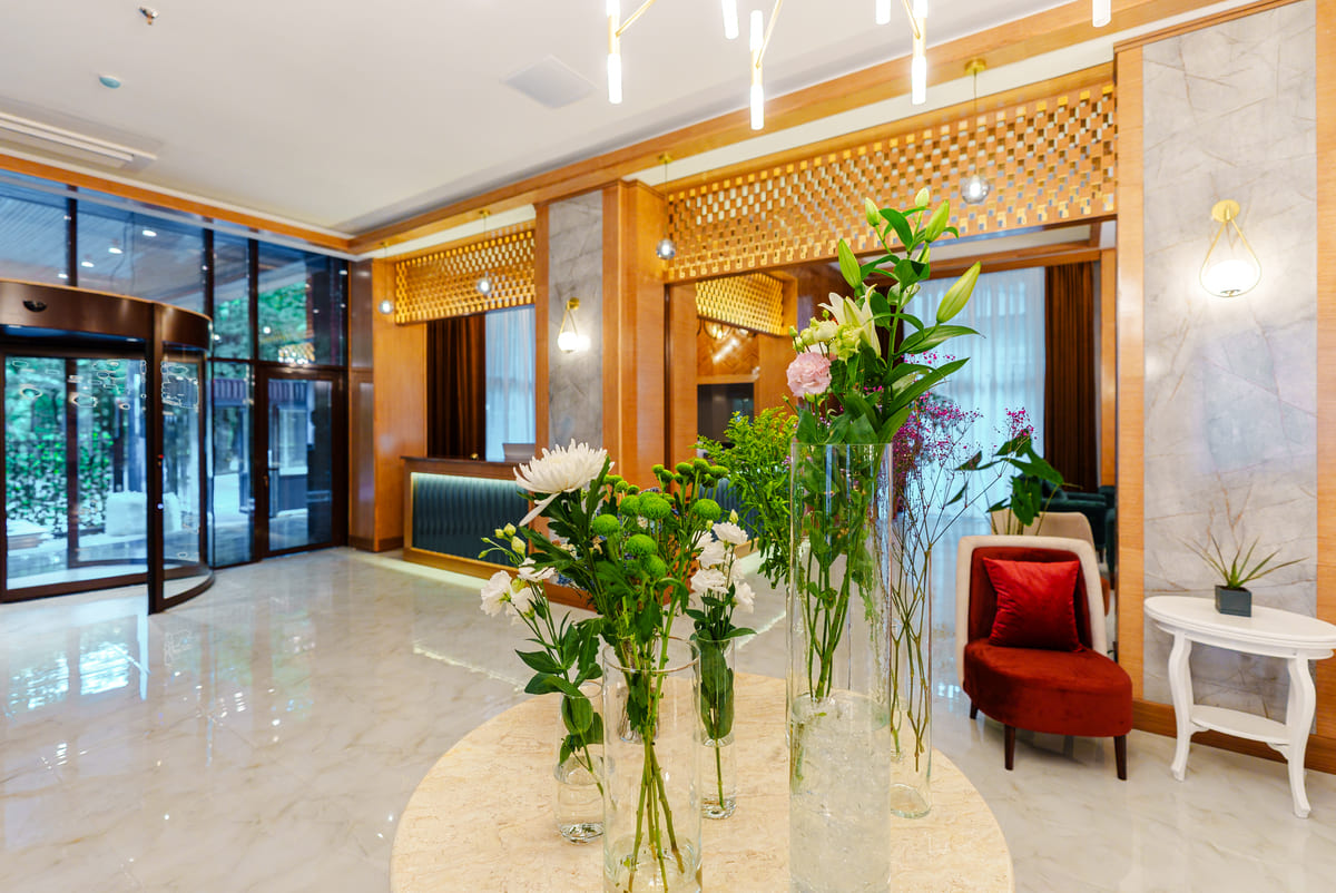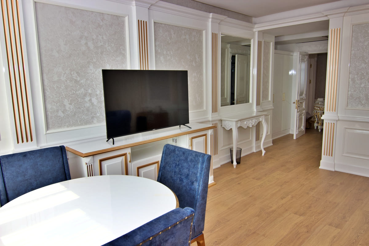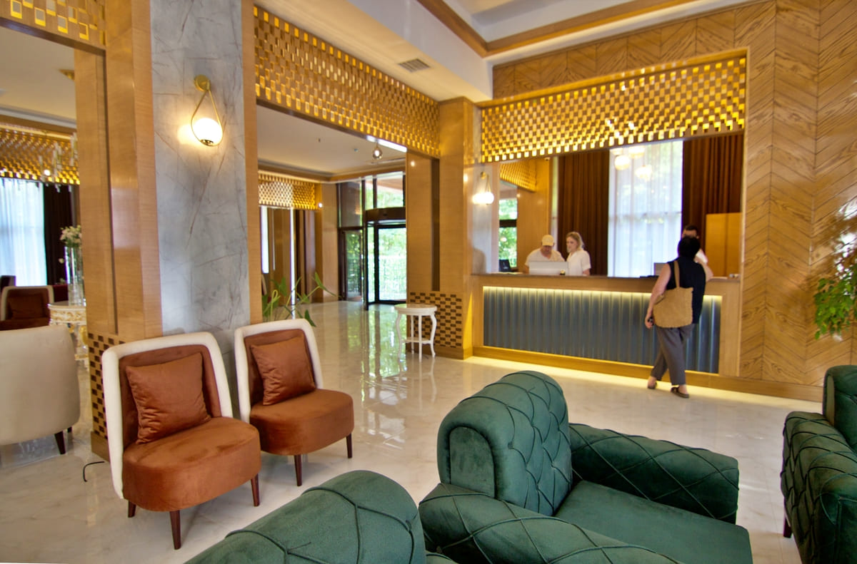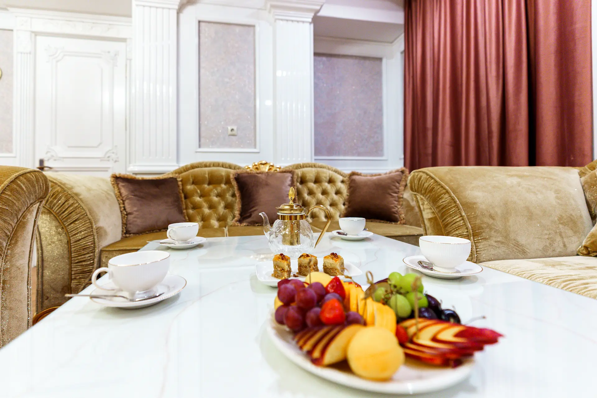 - Президентский сюит в стиле барокко (300 м²) — воплощение роскоши с просторными комнатами, элегантной обстановкой и панорамными окнами с видом на окрестности города Ессентуки. Идеален для тех, кто ищет эксклюзивный отдых.