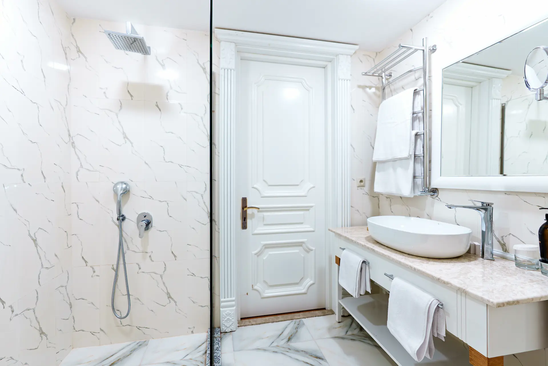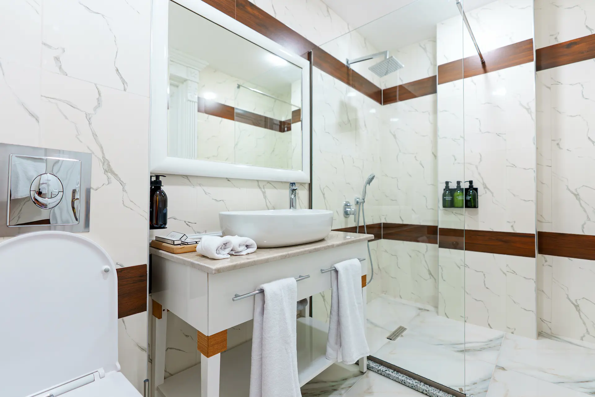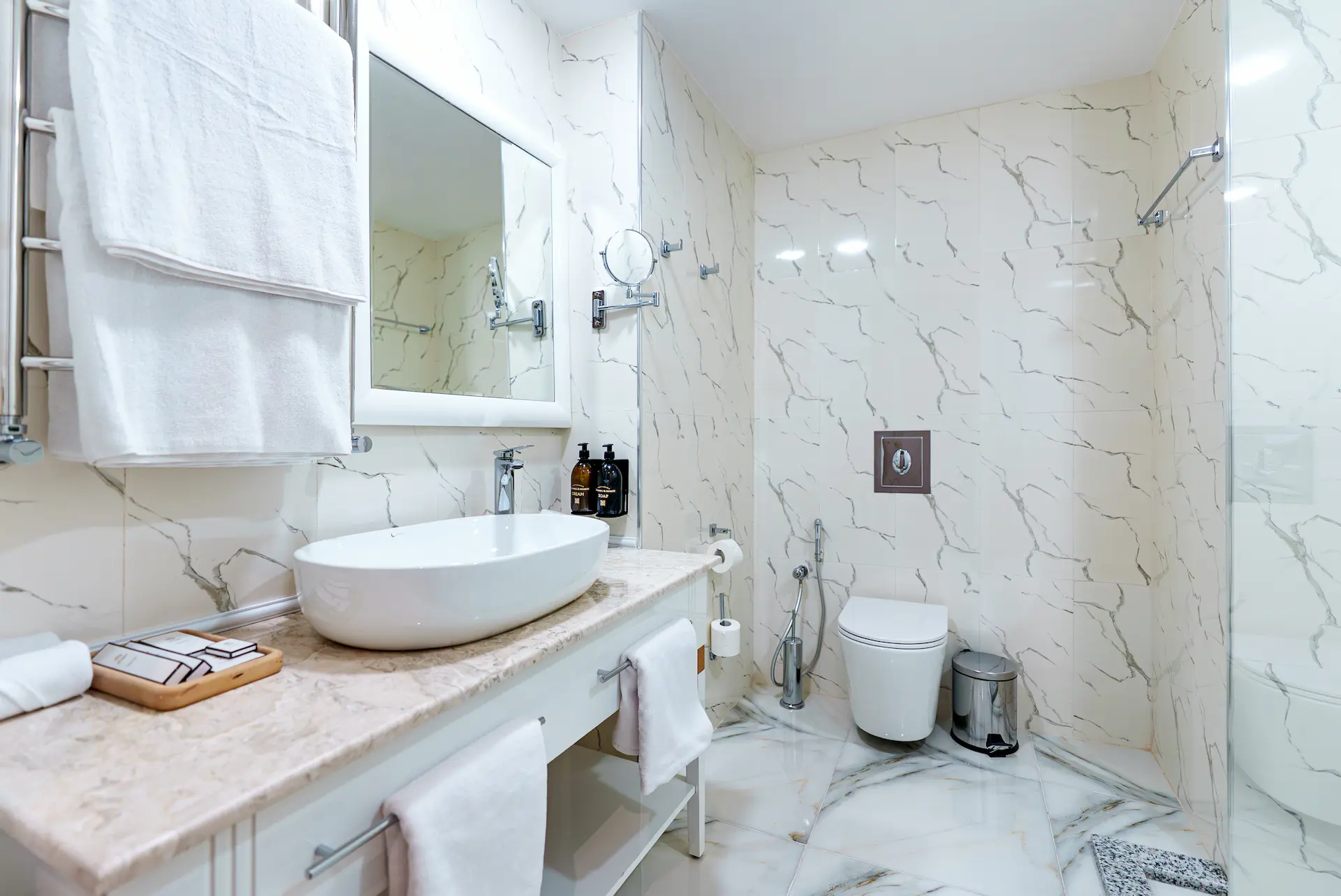 Санузел: Душ, унитаз, раковина, отдельный санузел в рабочем кабинете.