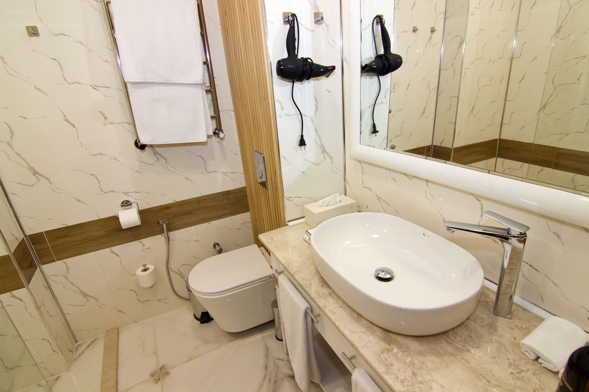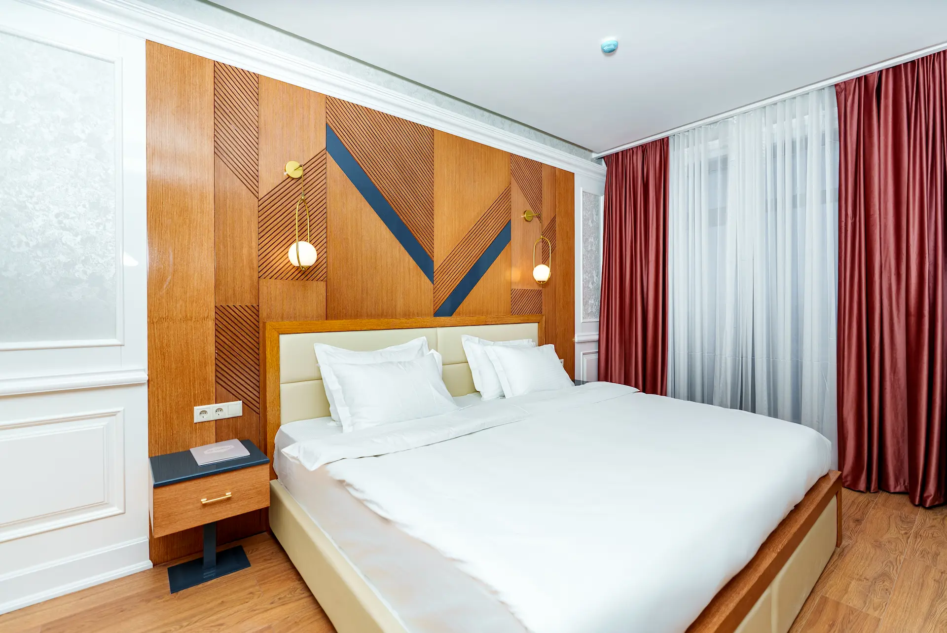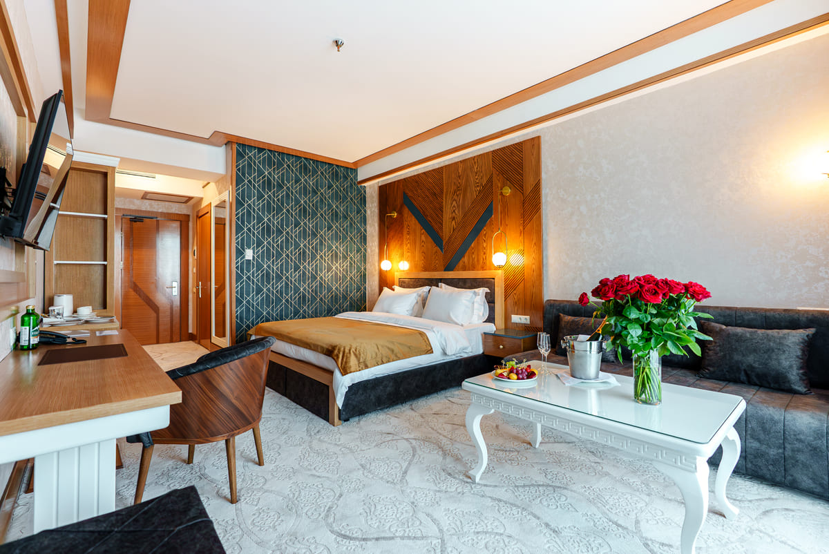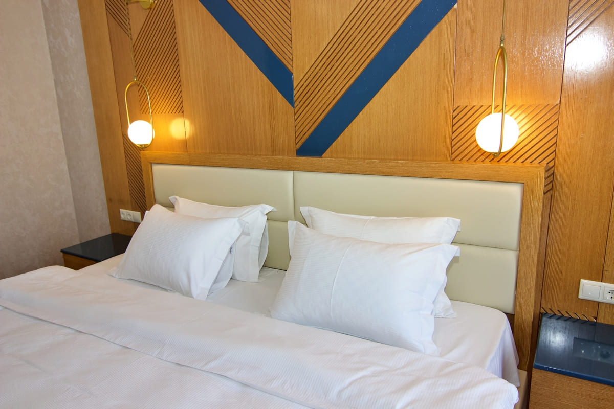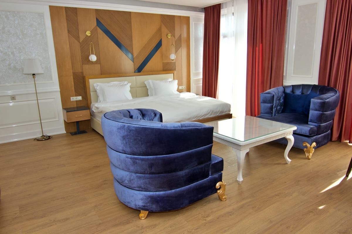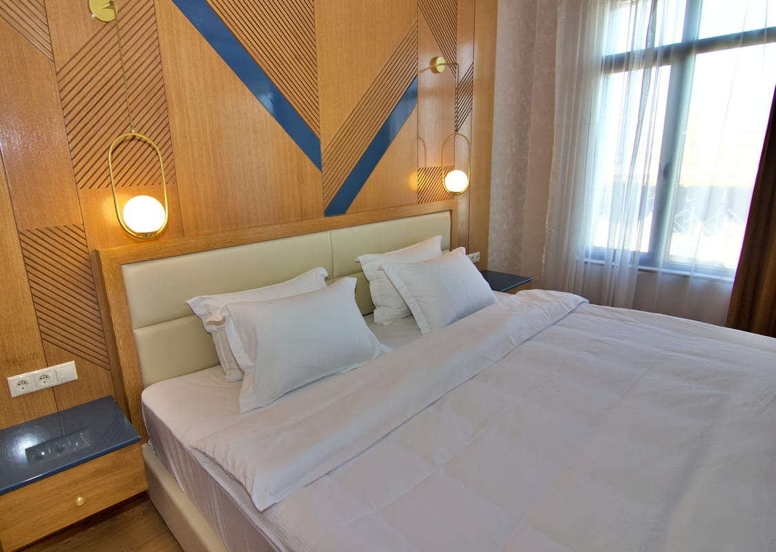 - Супериор (50 м²) — просторный и элегантный номер для тех, кто ценит роскошь и максимальный комфорт. Обеспечивает атмосферу уюта и релакса.