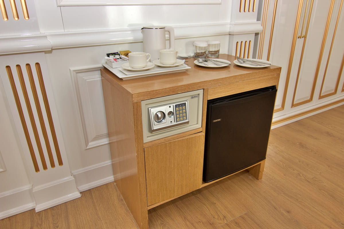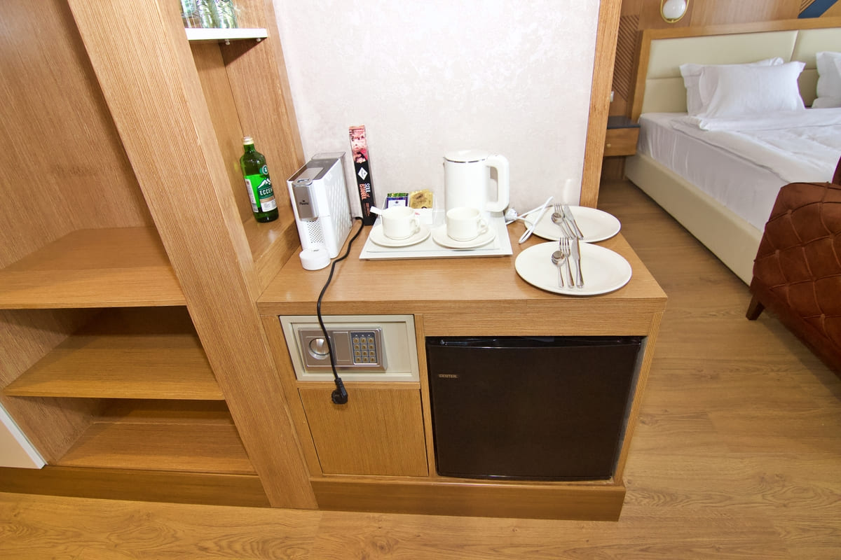Оборудование: Телевизор, Wi-Fi, чайная станция, мини-холодильник, сейф, электронный замок, кондиционер.
