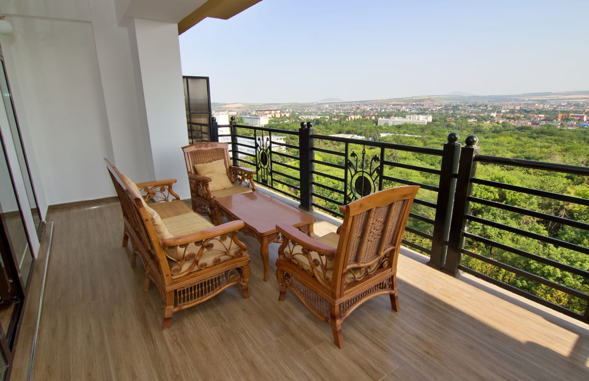 Балкон: Панорамные окна с видом на окрестности Ессентуков.