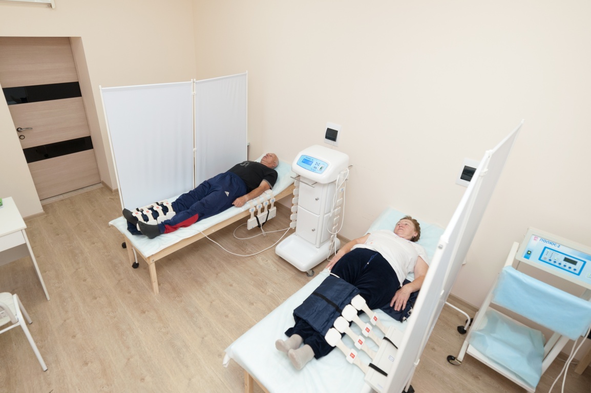 • Водные процедуры: 19 видов лечебных ванн и 4 вида душей, включая сухие углекислые ванны для улучшения кровообращения.