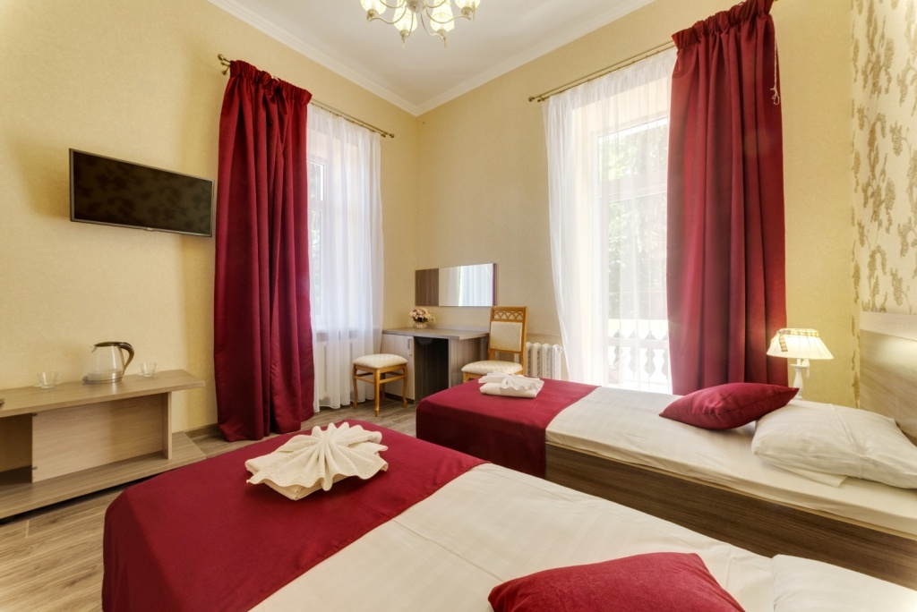 • Расположение: Удобное расположение между парком Победы и Курортным парком. В 5 минутах ходьбы грязелечебница им. Семашко и галерея с минеральной водой "Ессентуки №4".