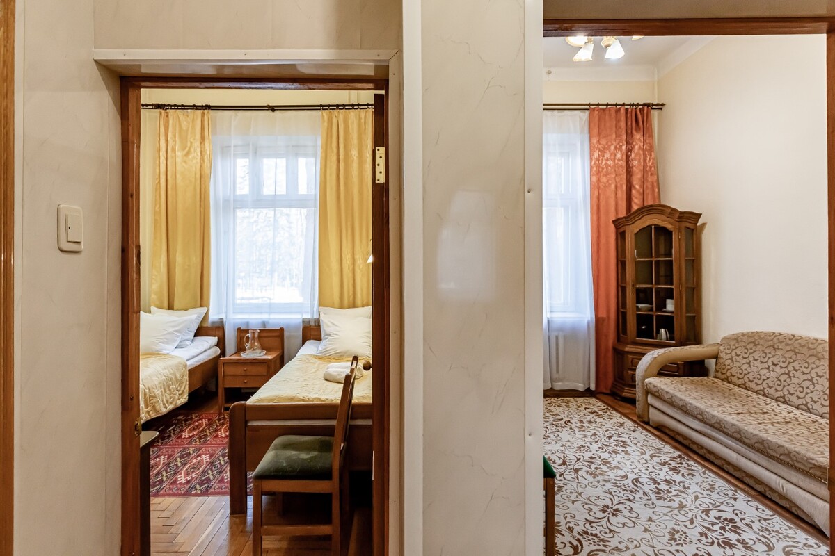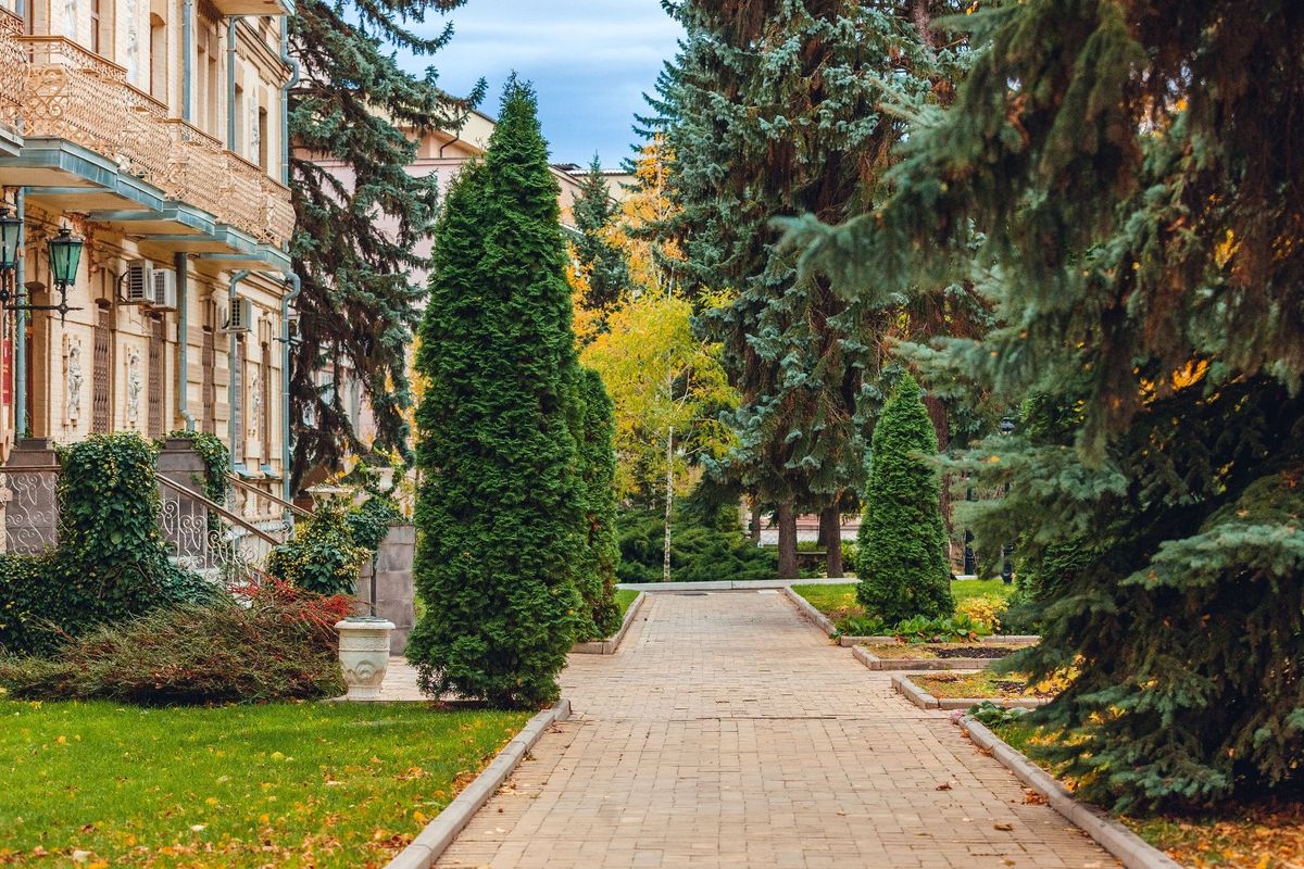 • Расположение: санаторий находится в центре Ессентуков, в 2–3 минутах от Курортного парка, грязелечебницы им. Семашко и бюветов с минеральной водой «Ессентуки №4», «№17» и «Новая»