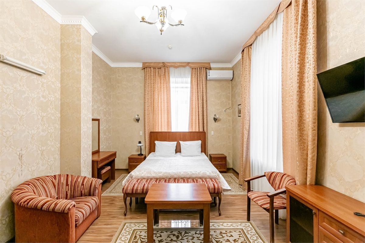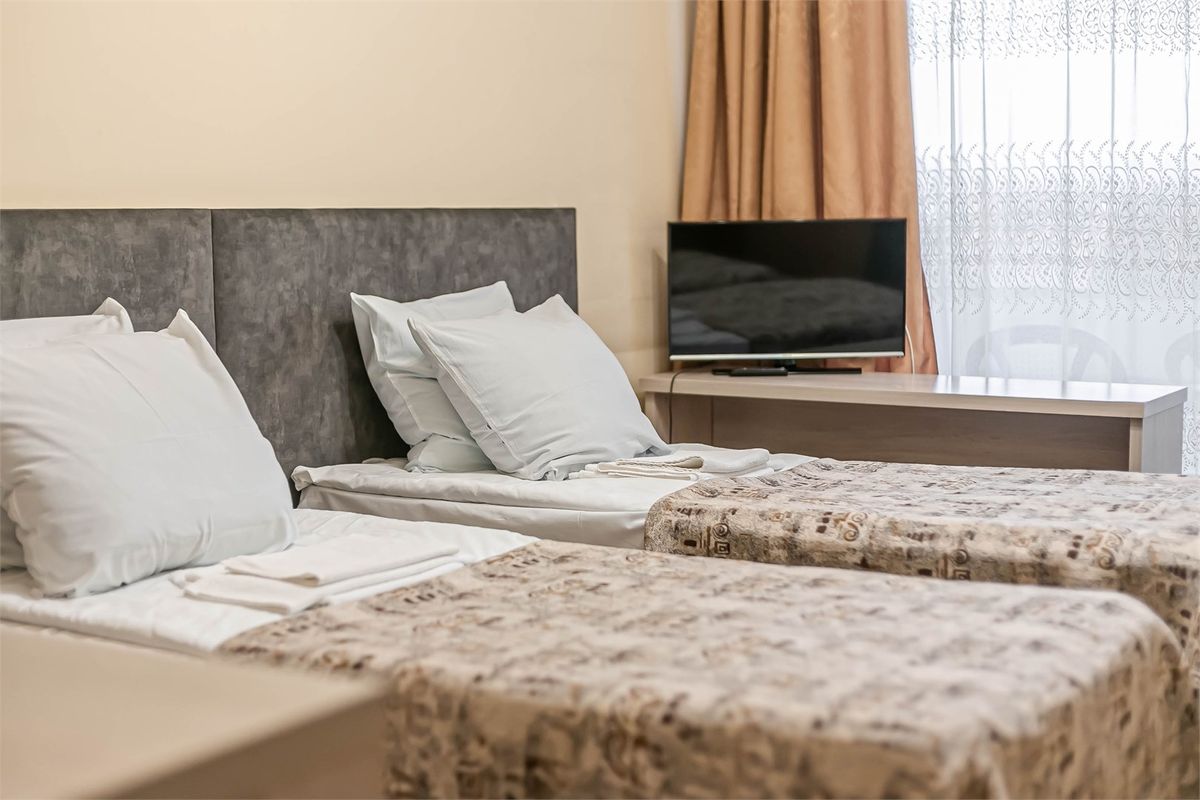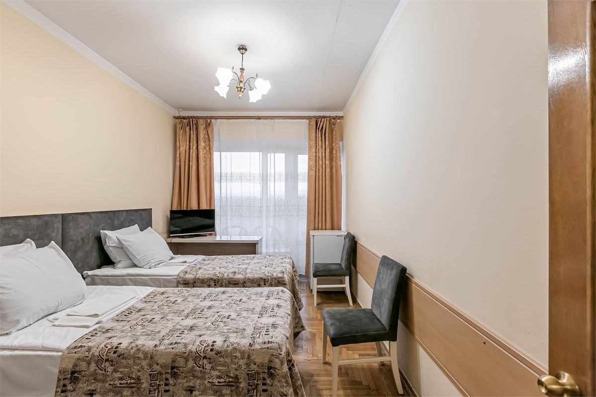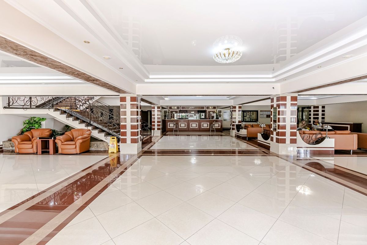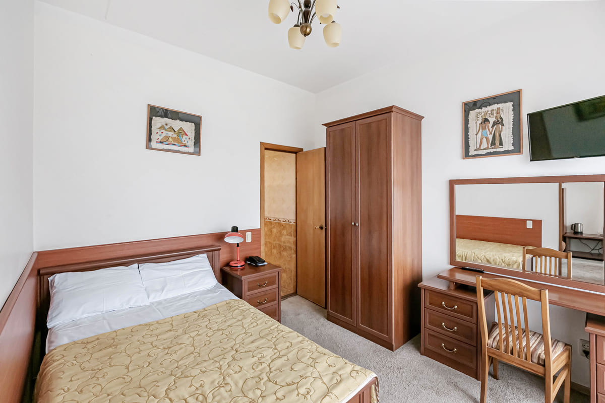 Санаторий располагает 240 номерами различных категорий, где созданы все условия для комфортного проживания. Просторные холлы, декорированные растениями, уютные зоны отдыха с мягкой мебелью создают атмосферу расслабления и спокойствия.