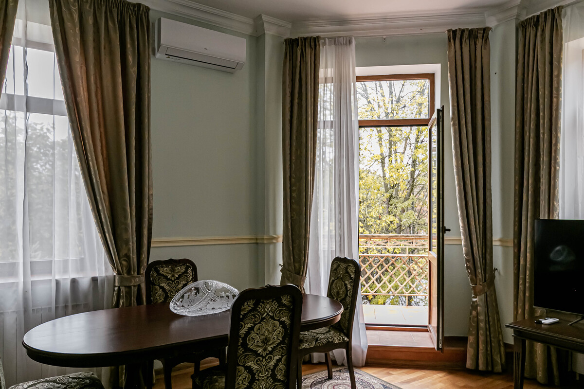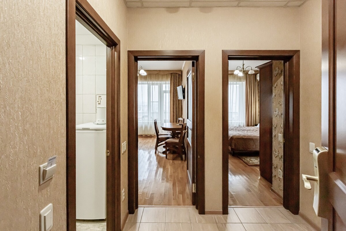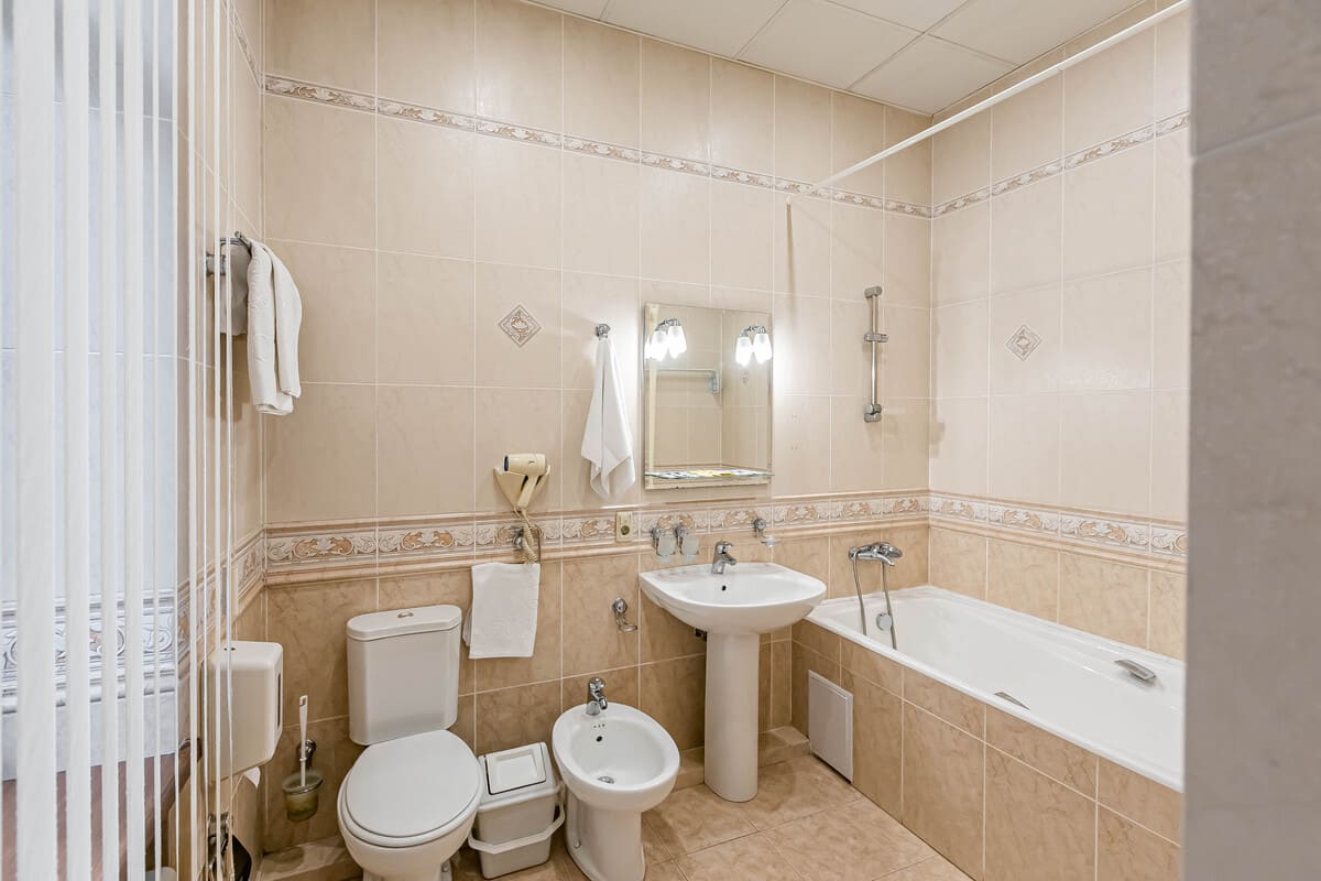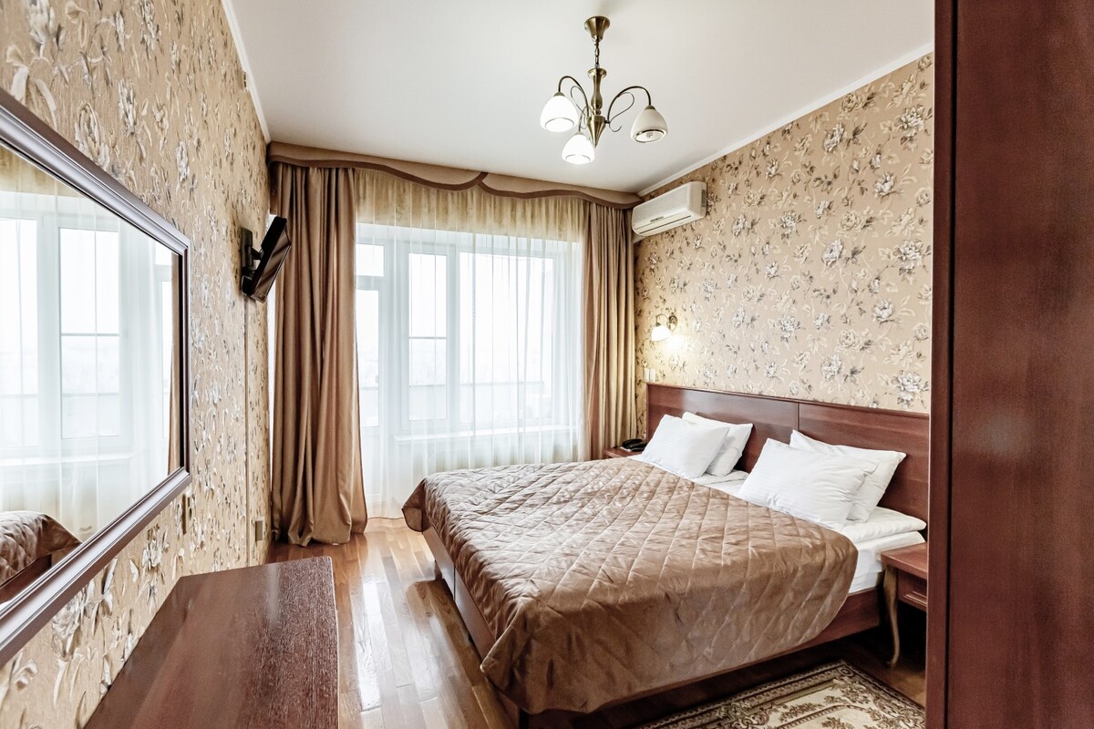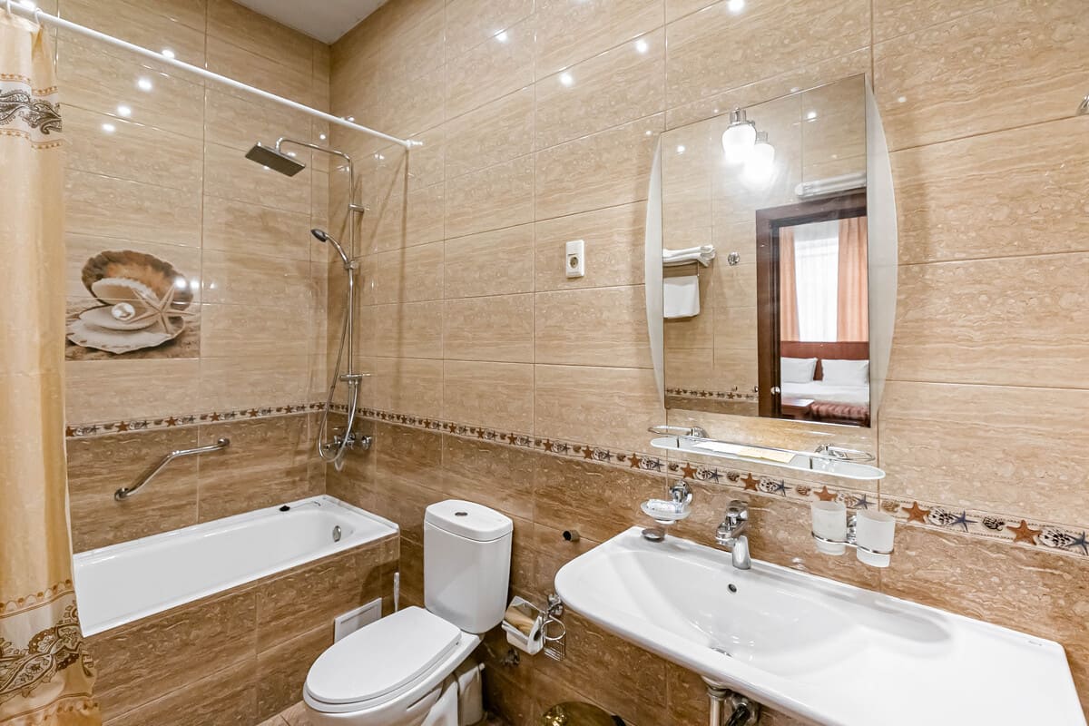 Санаторий располагает 240 номерами различных категорий, где созданы все условия для комфортного проживания. Просторные холлы, декорированные растениями, уютные зоны отдыха с мягкой мебелью создают атмосферу расслабления и спокойствия.