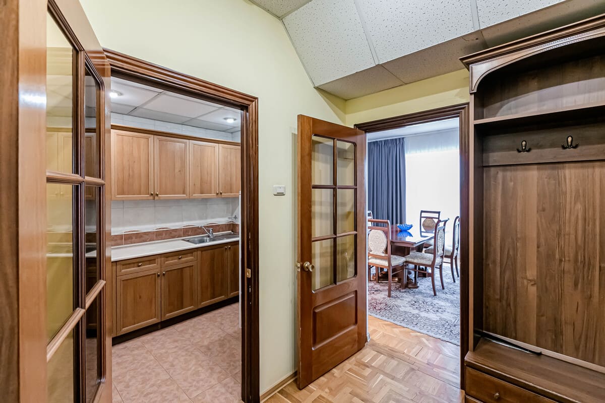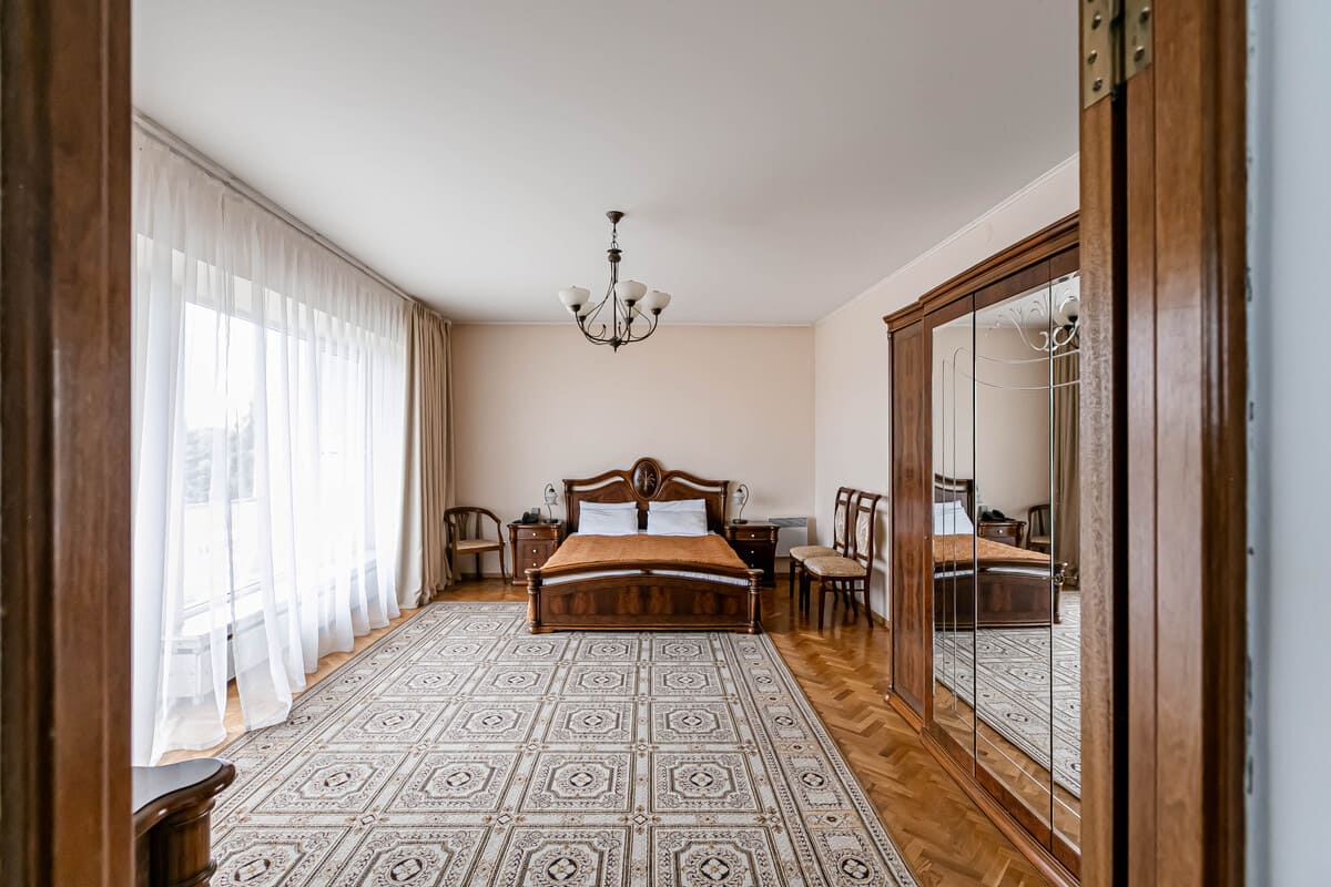 Мебель: Две отдельно стоящие кровати, диван, шкаф, тумба под телевизор, прикроватная тумба, туалетный столик, стул, кресло, журнальный стол, шкаф для посуды.
