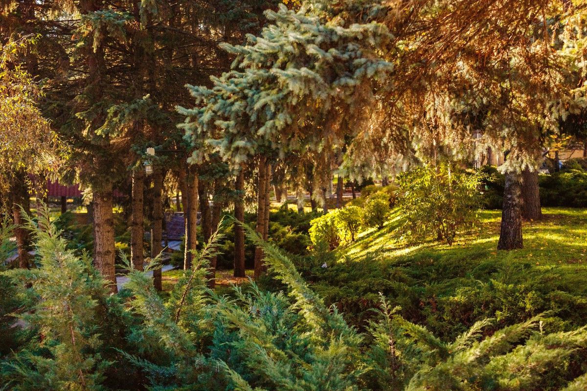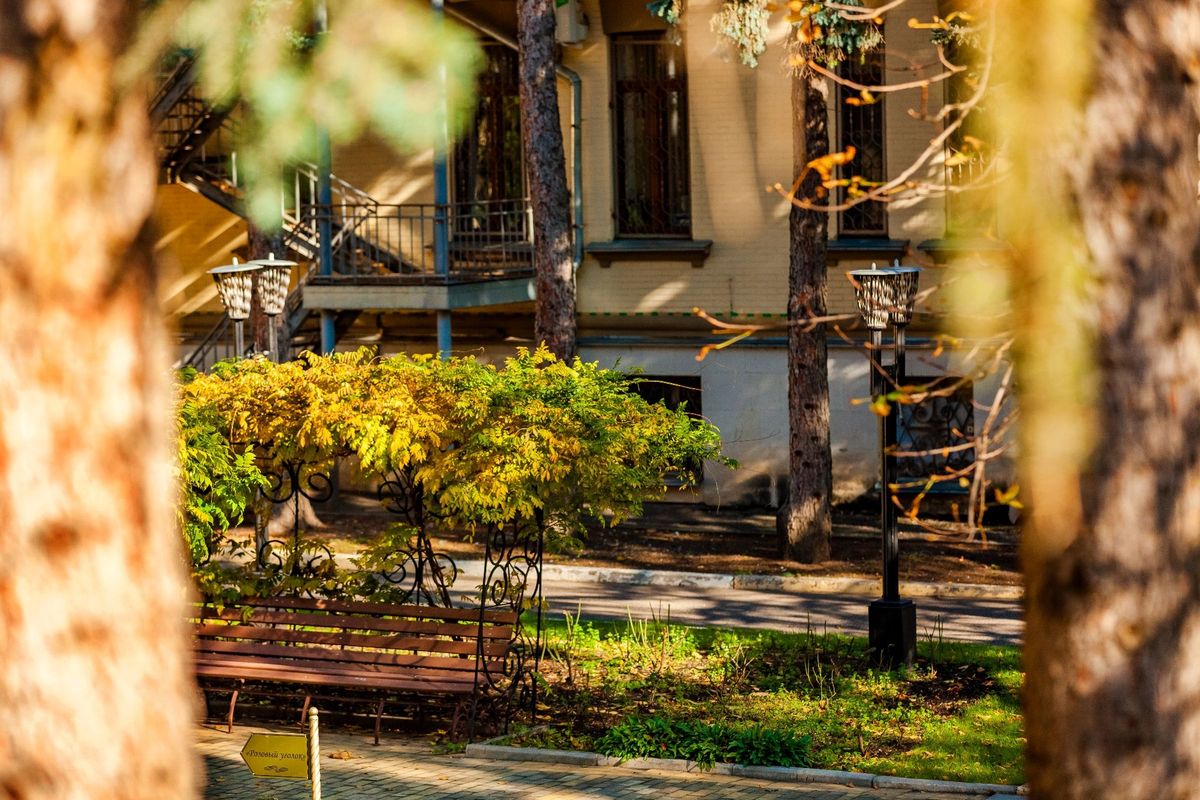 На территории санатория разбит небольшой ухоженный парк со скамейками и отличным освещением в тёмное время суток. В здравнице имеется большой плавательный бассейн.