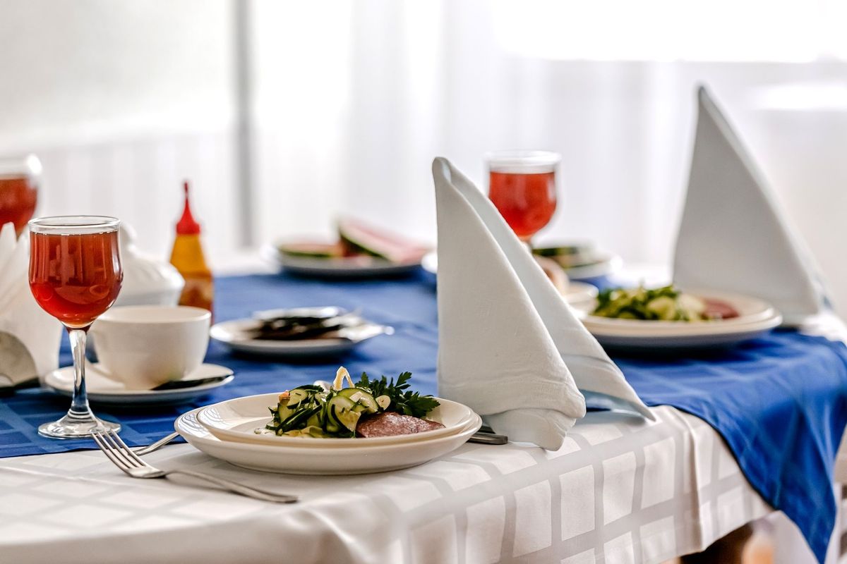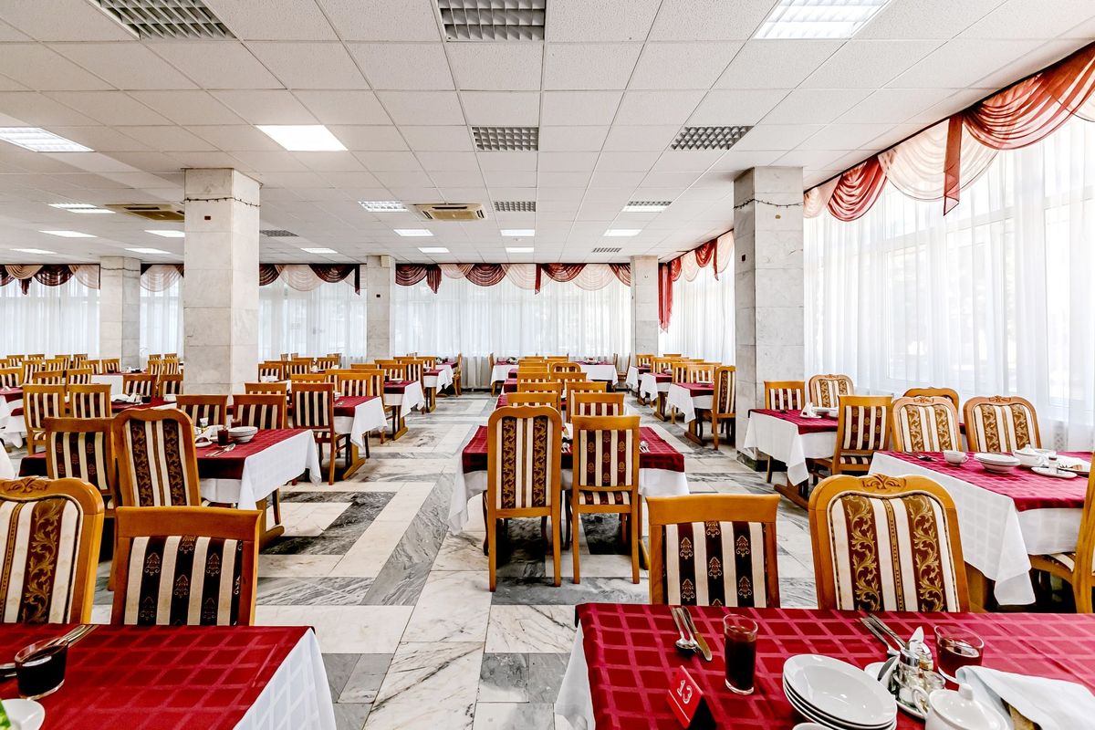 Система питания в «России» организована по принципу «меню-заказ» с учетом рекомендаций лечащих врачей. Питание – трехразовое, а также предусмотрены диетические блюда, которые разрабатываются диетологом. В рационе отдыхающих представлены овощи и фрукты, мясные и рыбные блюда, а также собственная выпечка.
