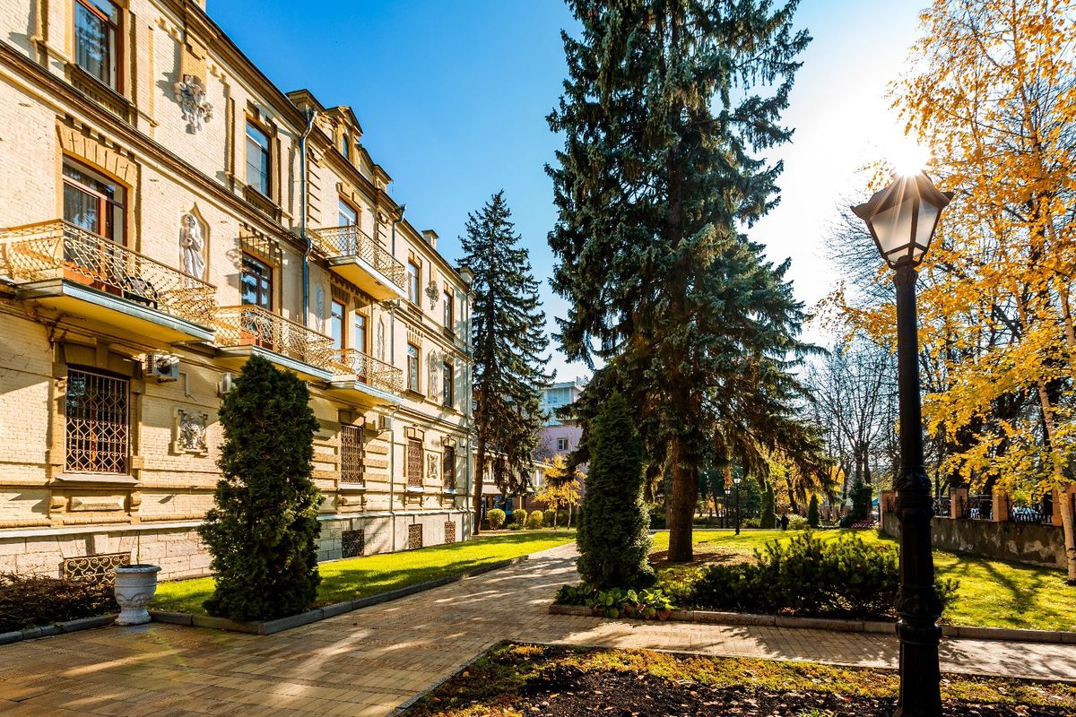 • Территория: ухоженный небольшой парк с освещением и скамейками