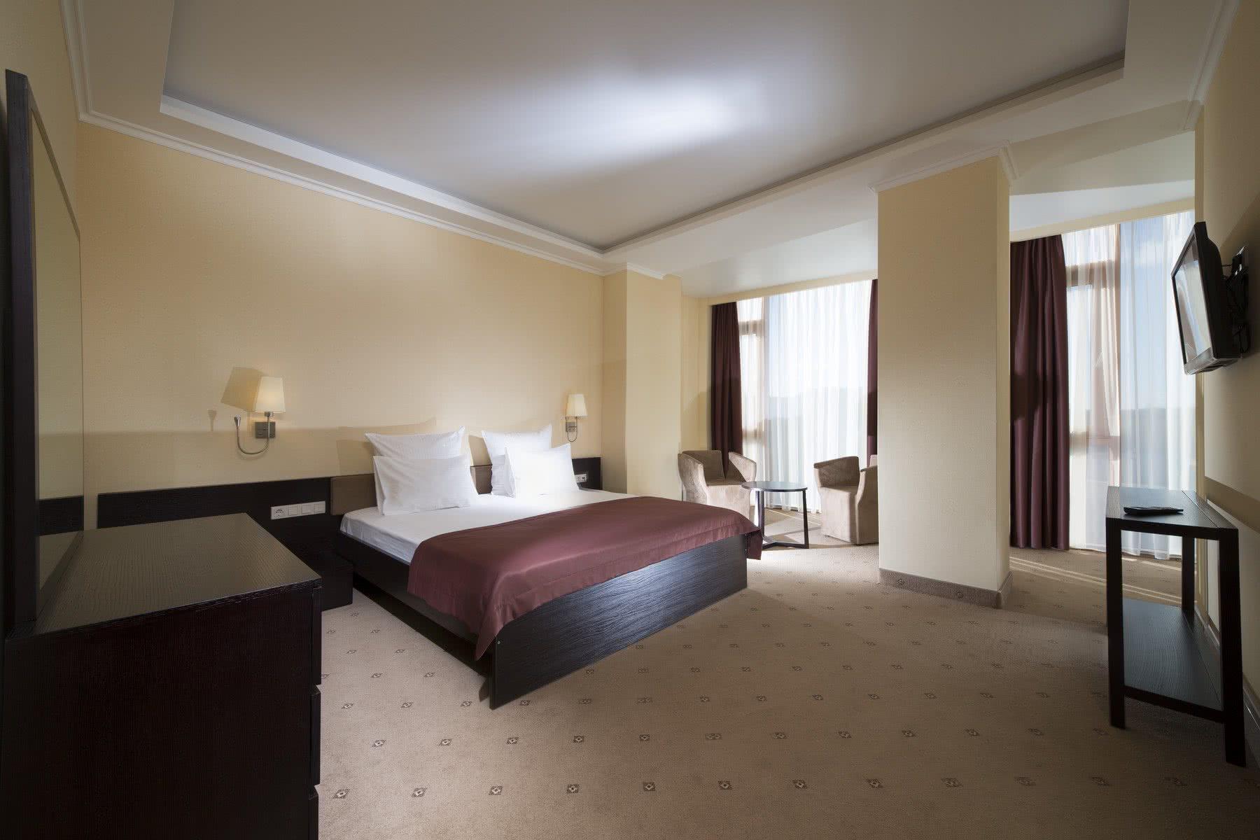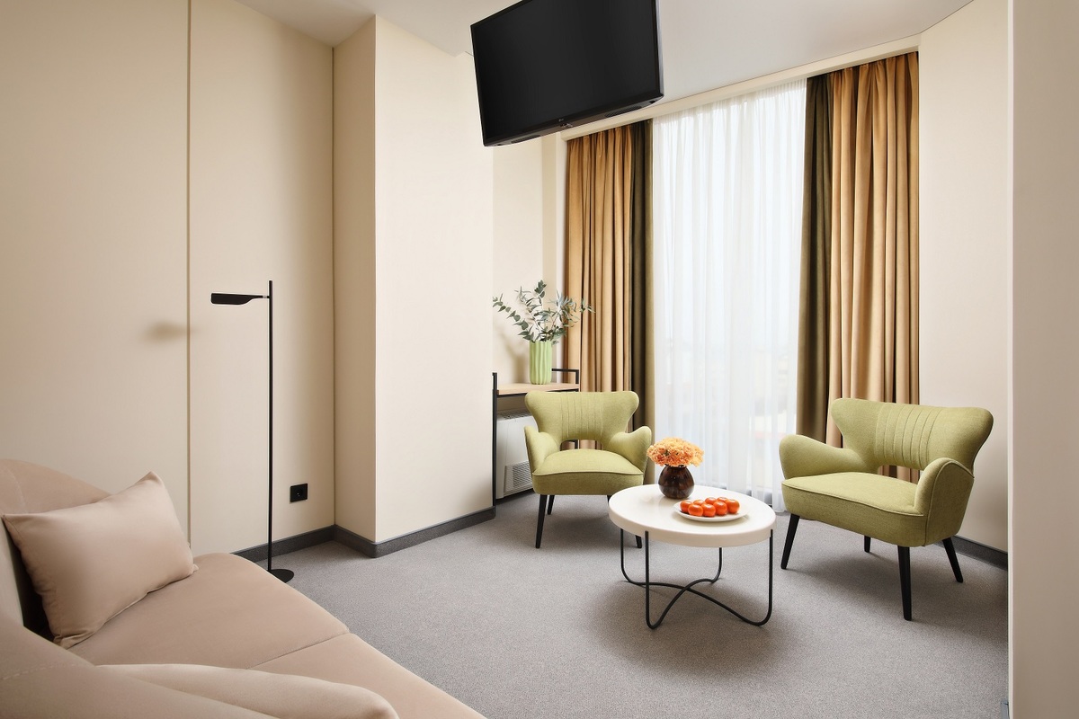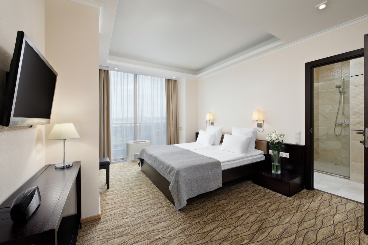 Оборудование: Мебель в современном стиле, LED-телевизор, мини-холодильник, электрочайник и набор посуды, индивидуальная система кондиционирования воздуха.