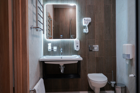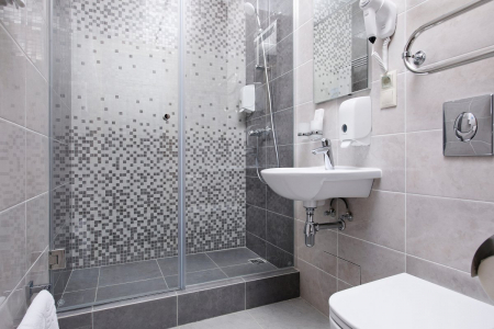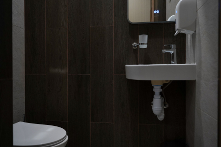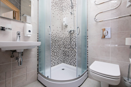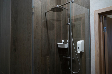 Санузел: с душевой кабиной, туалетные принадлежности, фен.