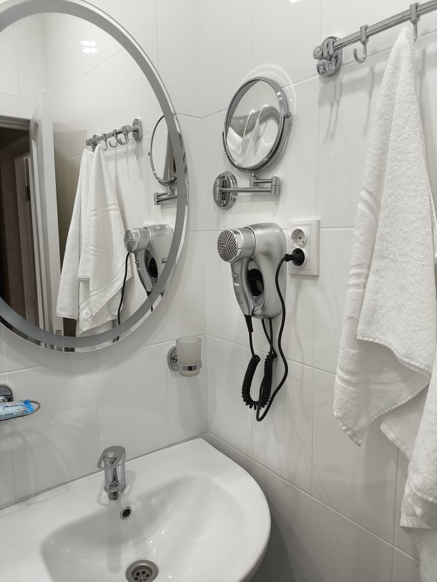 Санузел: с ванной, туалетные принадлежности, фен, халат.