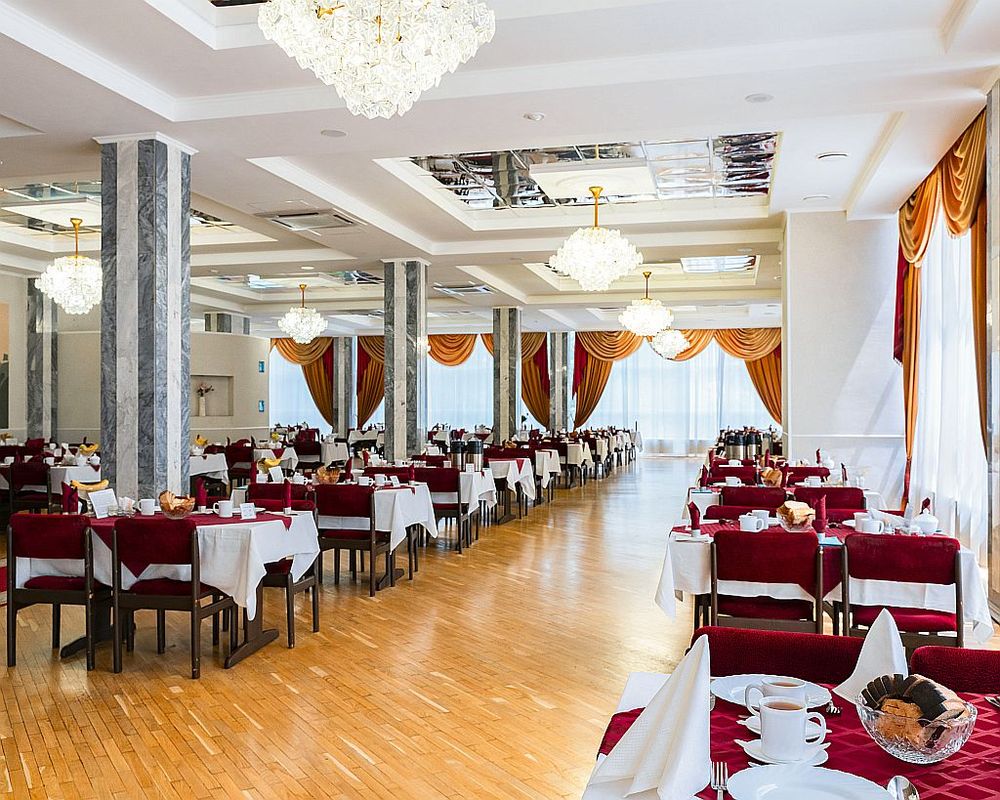 Питание в санатории диетическое. Гости выбирают и заказывают блюда из предложенного меню. Прием пищи осуществляется от 3 до 6 раз в день в соответствии с диетой, рекомендованной врачом. Существует система из 11 диет, включая питание для пациентов с сахарным диабетом, проблемами пищеварения и нарушением обмена веществ.