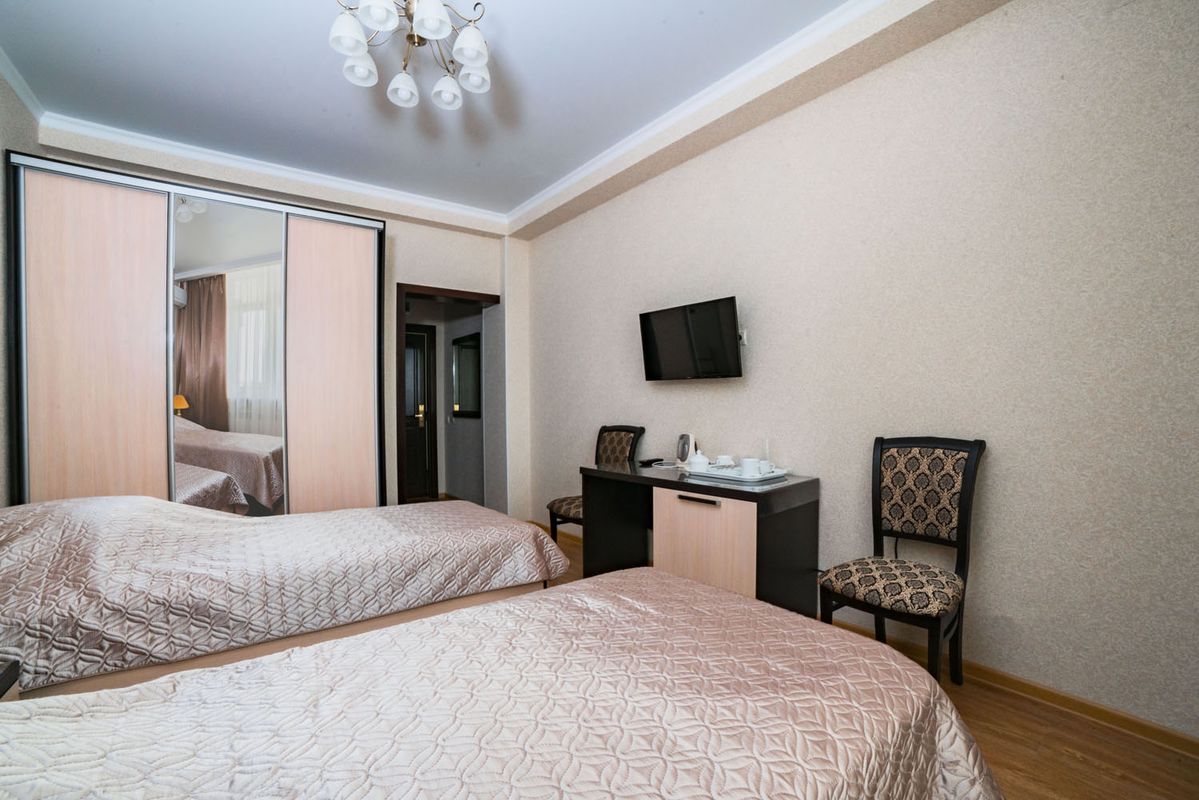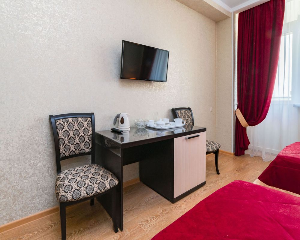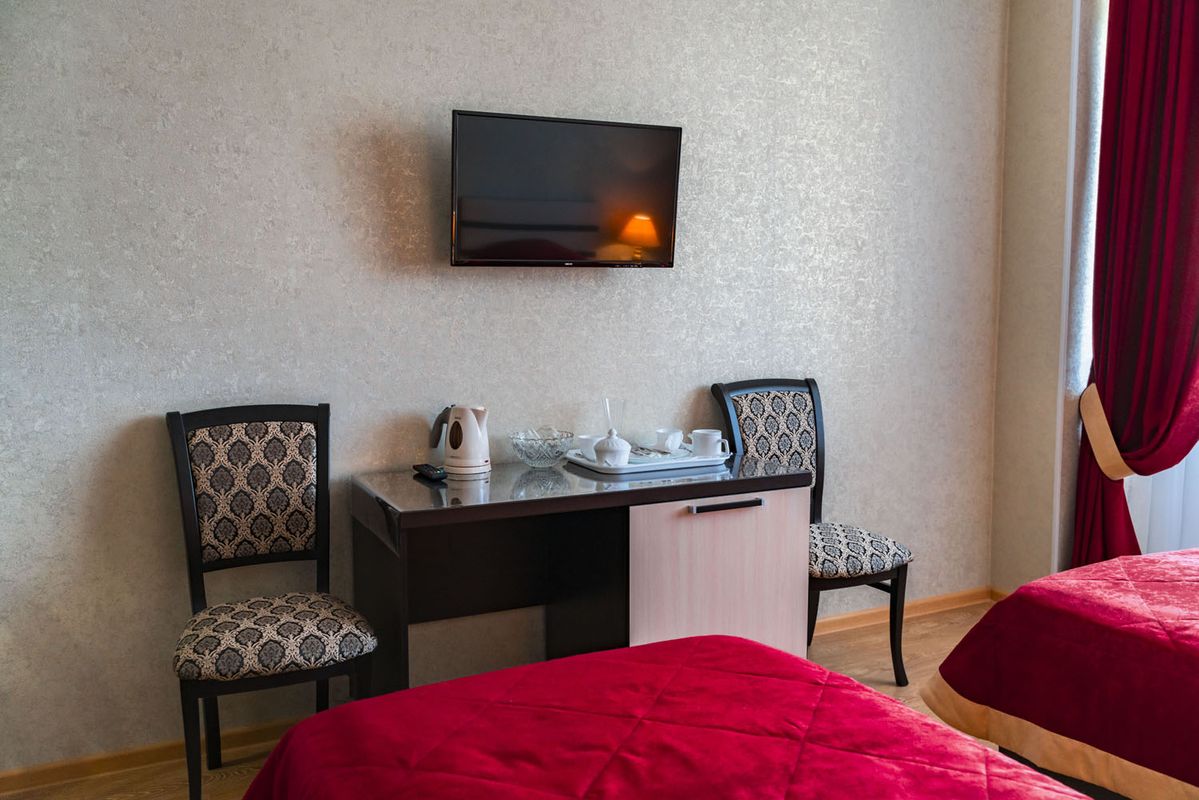 Мебель: Две односпальные кровати, прикроватные тумбочки, стол с 2 стульями.