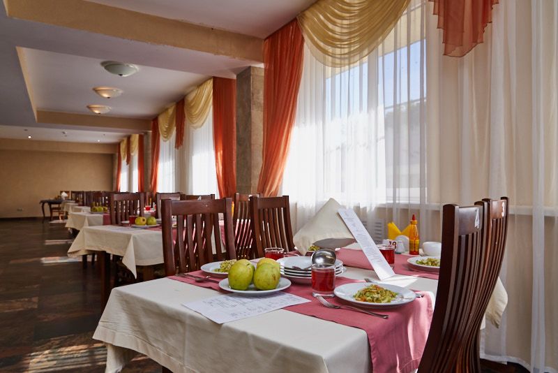 Питание организованно по системе «меню-заказ» 3 раза в сутки. Блюда готовятся по рекомендациям диет-врача. Лечащий врач назначает соответствующий тип питания — диетическое, белковое, низкокалорийное или стандартное меню. При приготовлении пищи используются исключительно свежие продукты с лучших кубанских хозяйств.