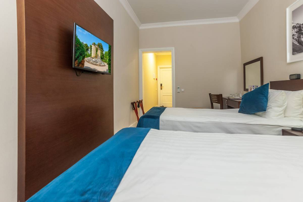 Мест в номере: 4 (1 двуспальная + 2 односпальные кровати).