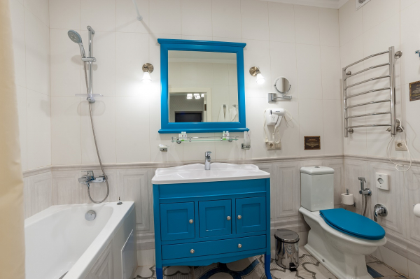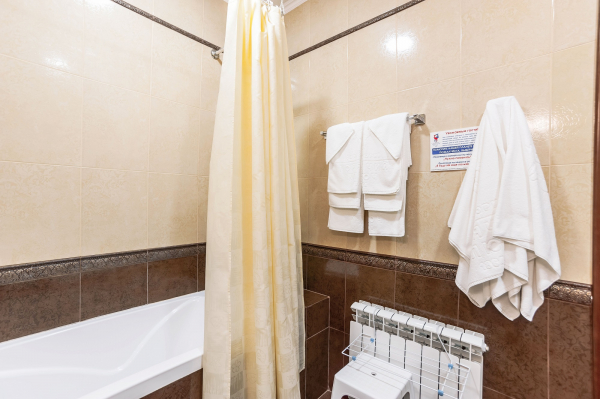 Санузел: совмещенный (душ, туалет, раковина), банные принадлежности, гигиенический набор (шампунь, мыло, гель, шапочка для душа).