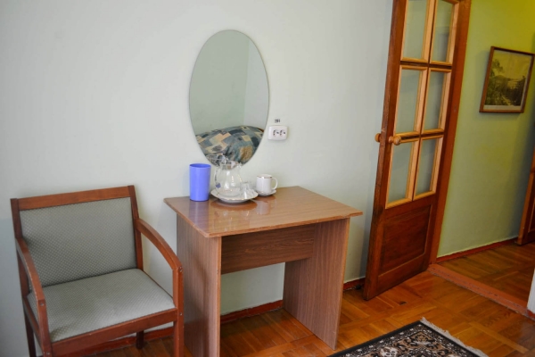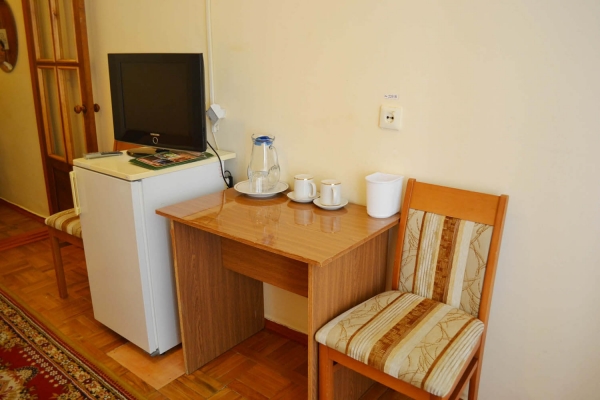 Оборудование: Телевизор, сплит-система, холодильник, микроволновая печь, электрочайник, набор посуды, телефон, сейф, бесплатный Wi-Fi.