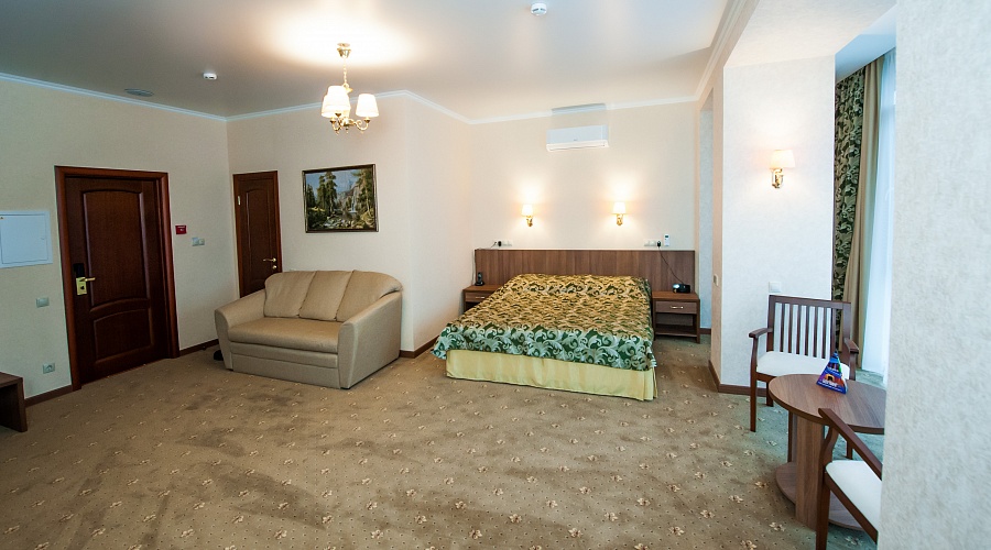 Оборудование: Телевизор, сплит-система, мини-бар, гладильная доска с утюгом, телефон, электрочайник, фен, напольные весы, сейф, торшеры и настольные лампы.