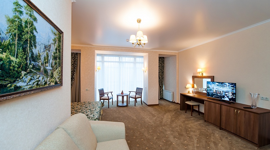 Комплекс санатория расположился в западной части города в 5 минутах от бювета с минеральным источником. Окна номеров порадуют вас видом на живописные горы и речную долину. А дойти до центра города можно всего за несколько минут. На территории здравницы имеется небольшой открытый бассейны с чистейшей пресной водой и навесом, который защищает гостей от солнечных лучей.