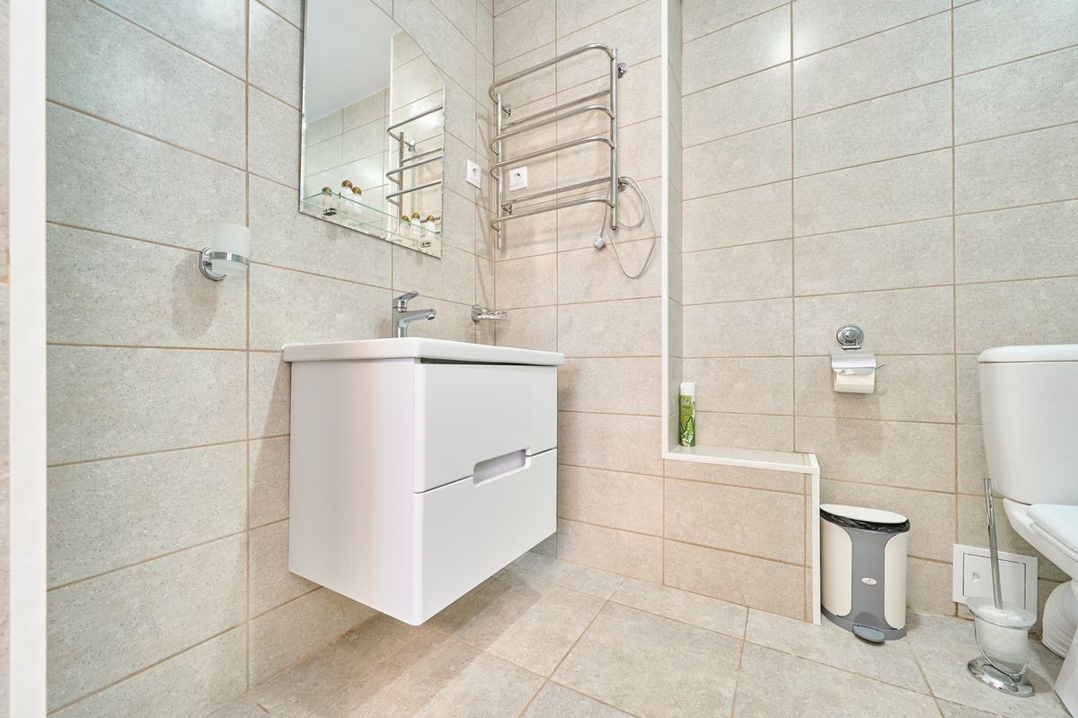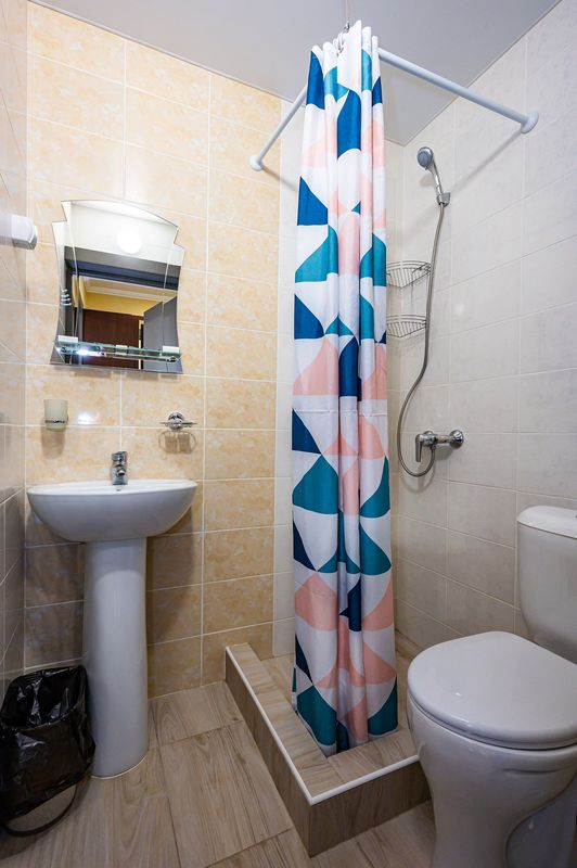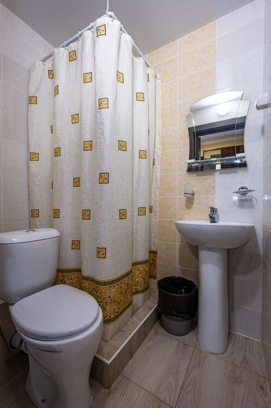 Санузел: Душевая кабина, раковина, унитаз, гигиенический набор (мыло, шампунь, гель для душа, шапочка), комплект из 3 полотенец для каждого гостя, фен по запросу.