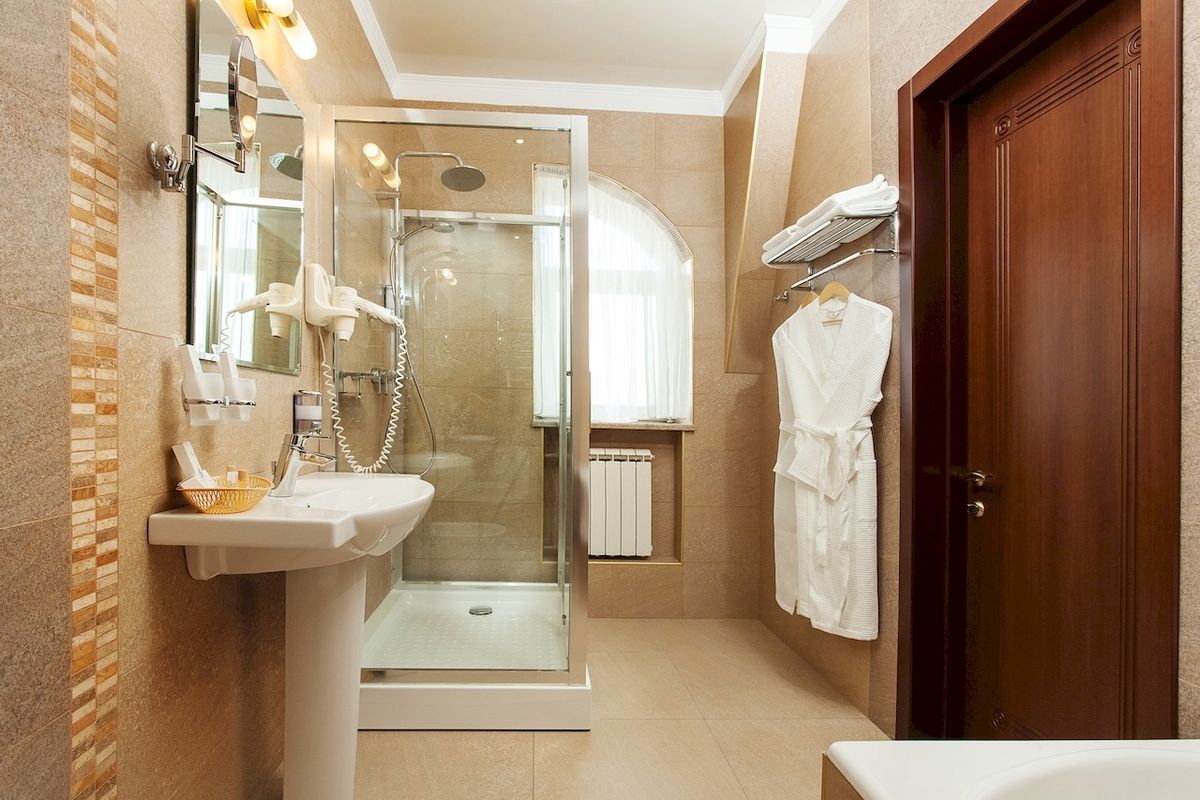 Санузел: Ванная комната, халаты, полотенца.