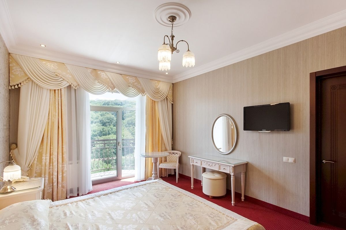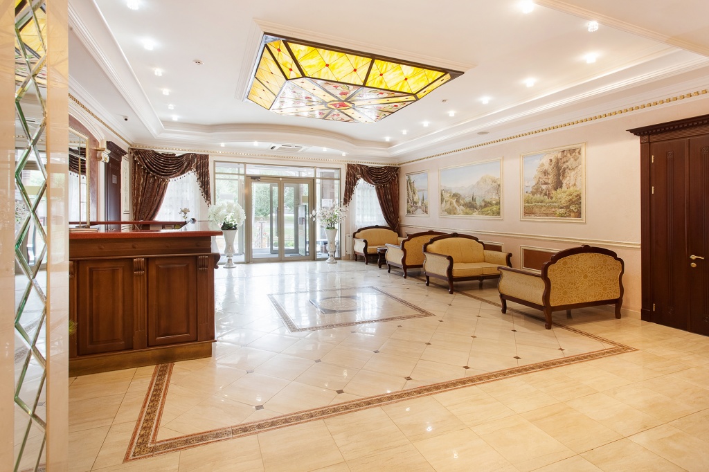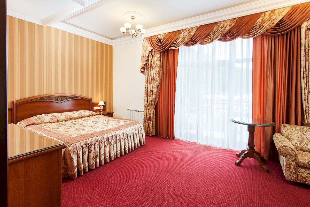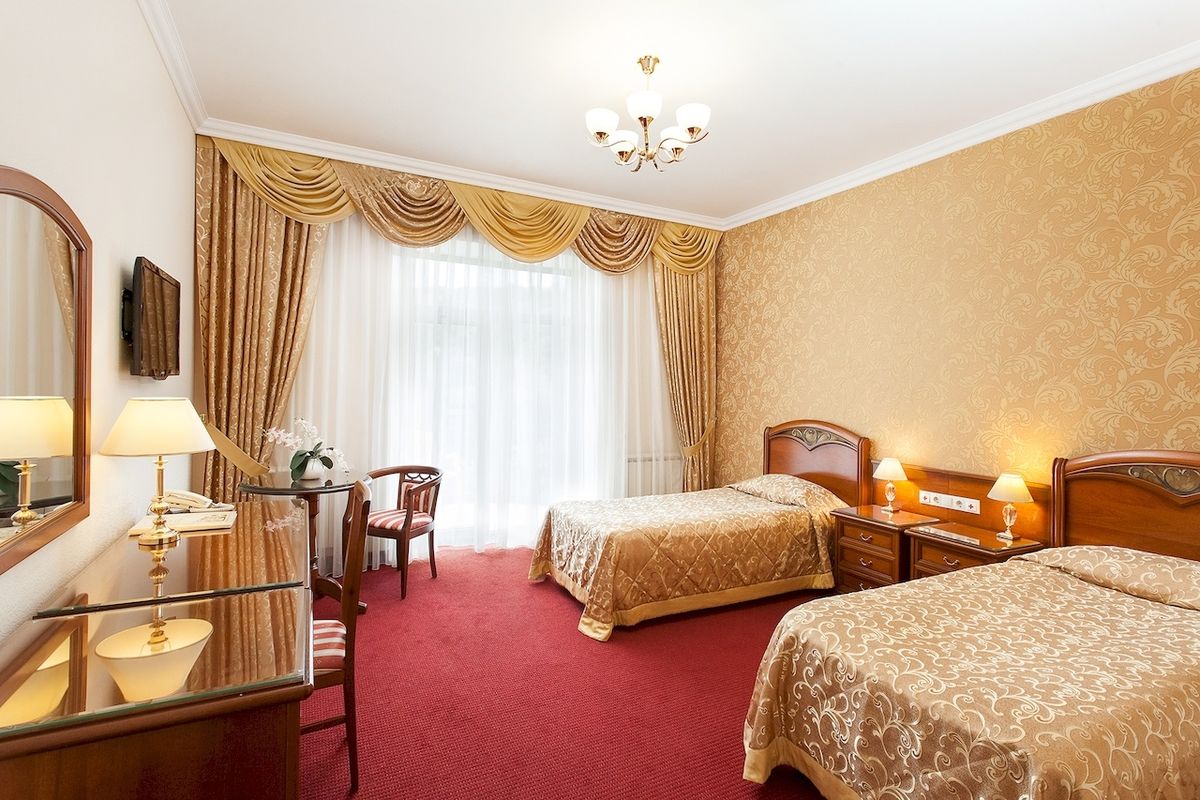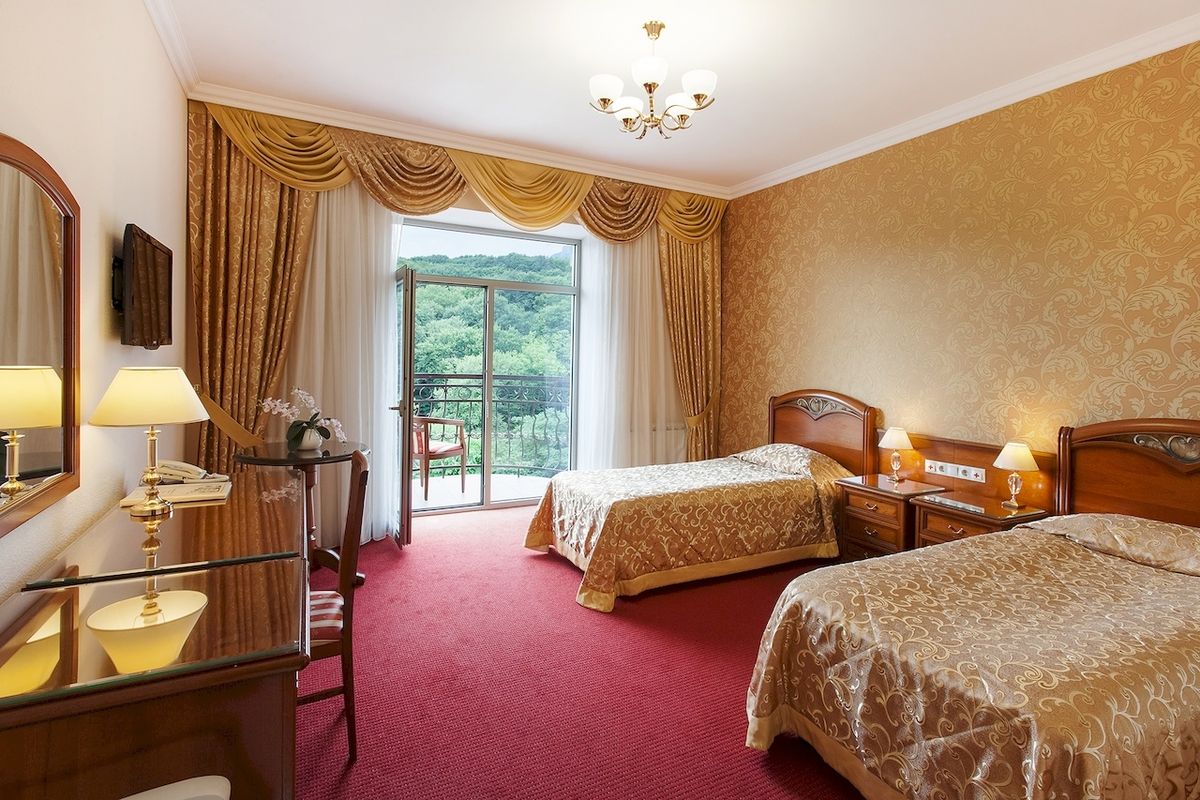 • Камерный уютный санаторий: 33 номера в одном корпусе, все с английскими балконами и панорамным видом на горы и парк, площадь от 26 кв.м с итальянской мебелью и сантехникой