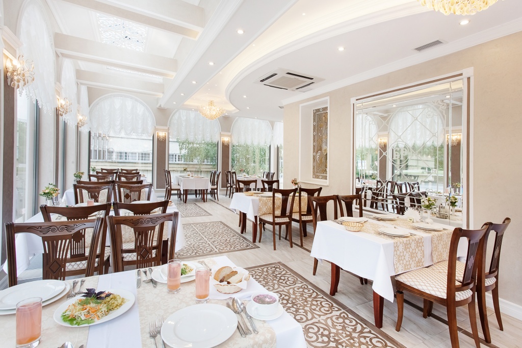 • Питание: трехразовое по системе «меню-заказ» с элементами «шведского стола», вегетарианское и постное меню