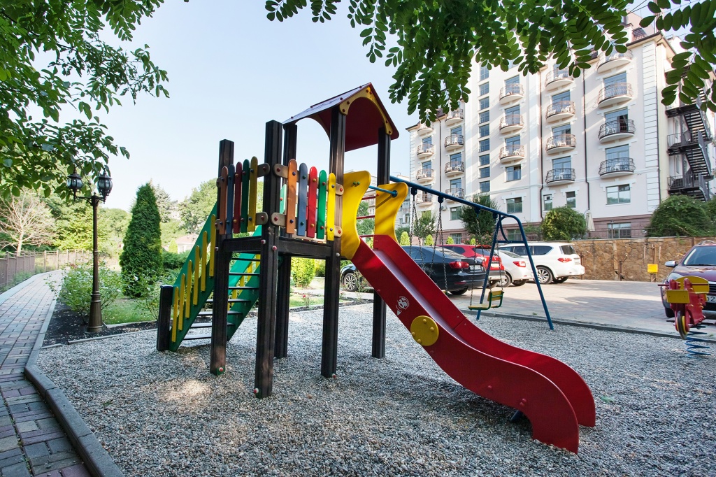 • Территория: уютный итальянский сквер с беседкой и фонтаном, летняя зона аэросолярия