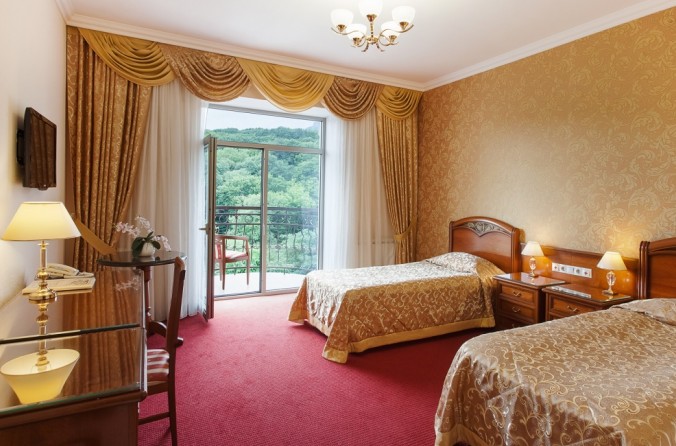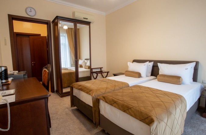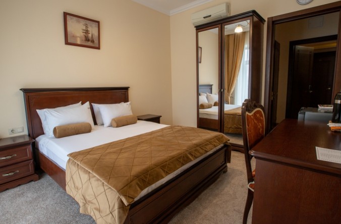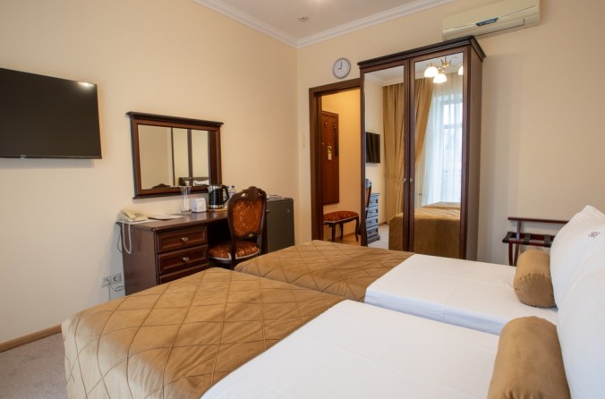 Мебель: Две односпальные кровати (размещение twin), прикроватные тумбочки, шкаф-купе, столик со стульями, итальянская мебель.