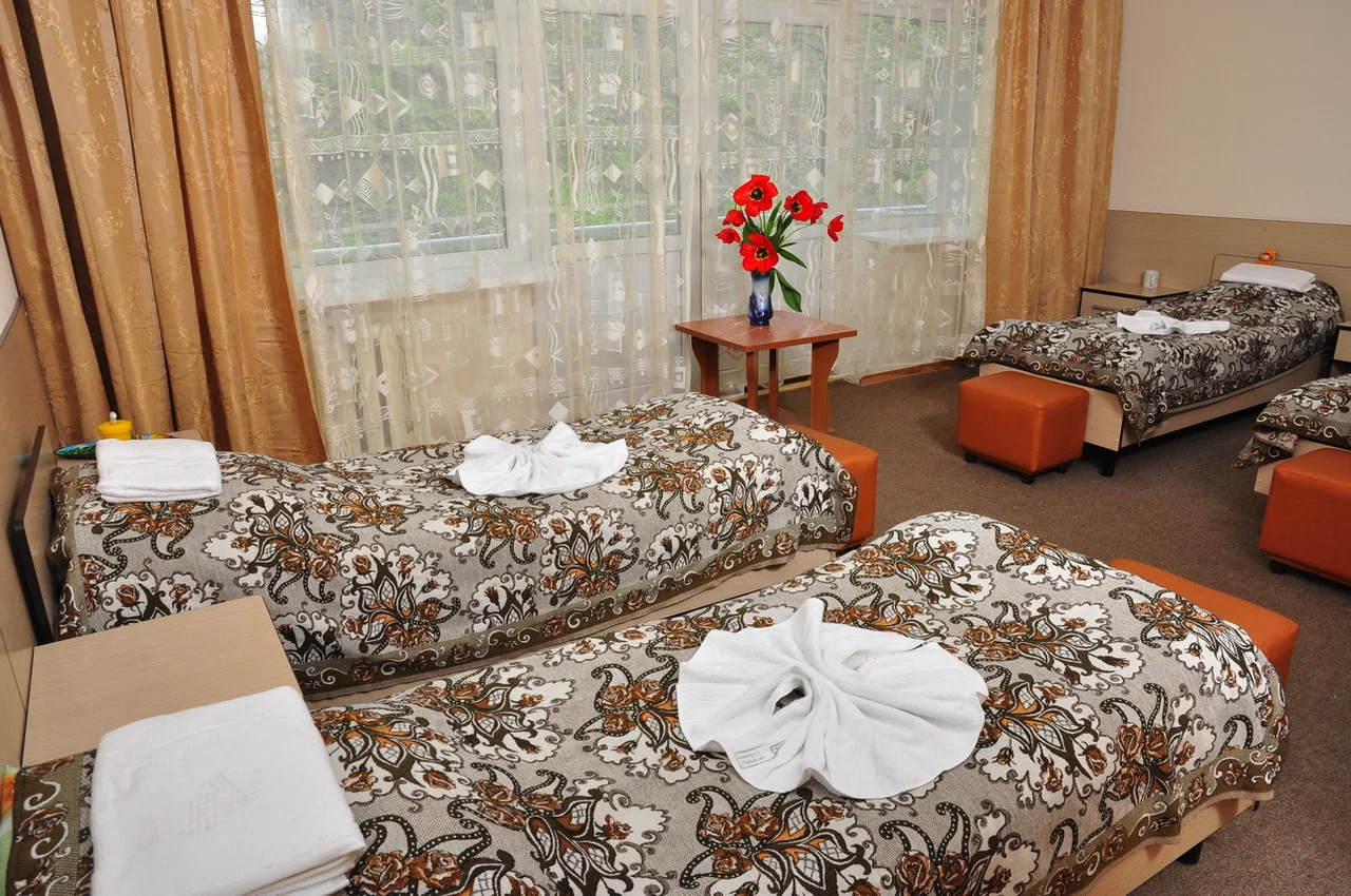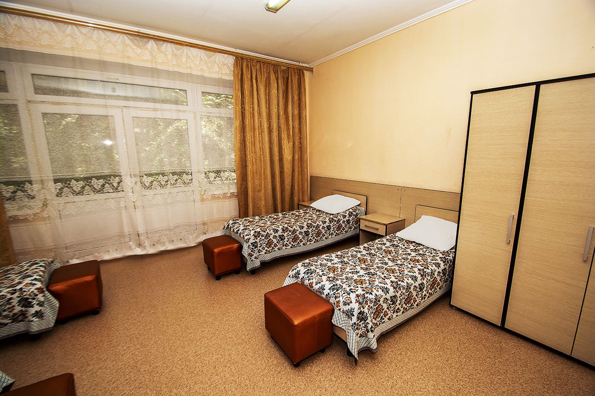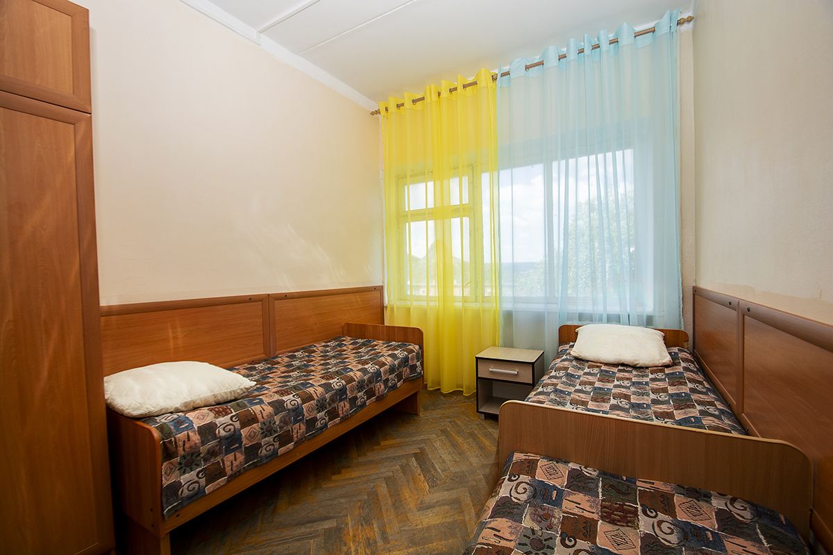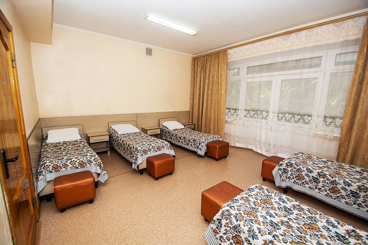 Дети размещаются в 2-, 3- и 5-местных номерах. Санузлы и душевые комнаты расположены на этажах. В номерах предусмотрена удобная мягкая мебель, телевизор и холодильник.