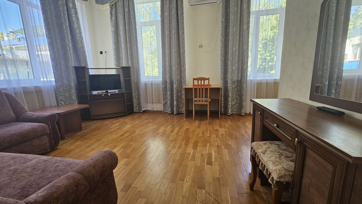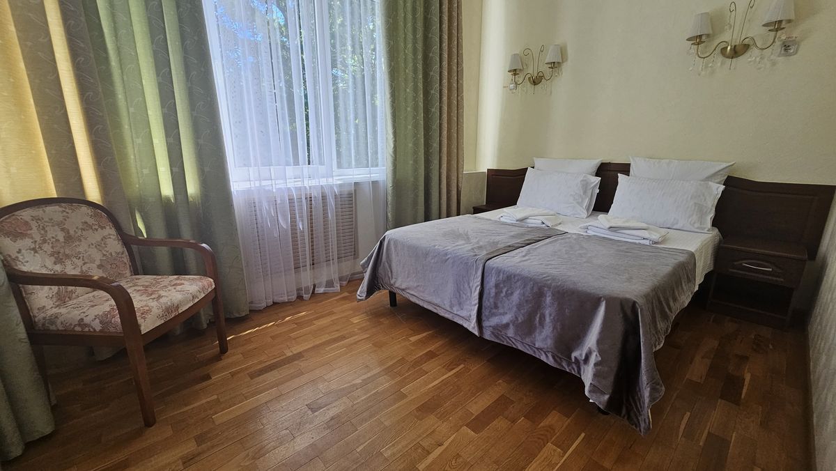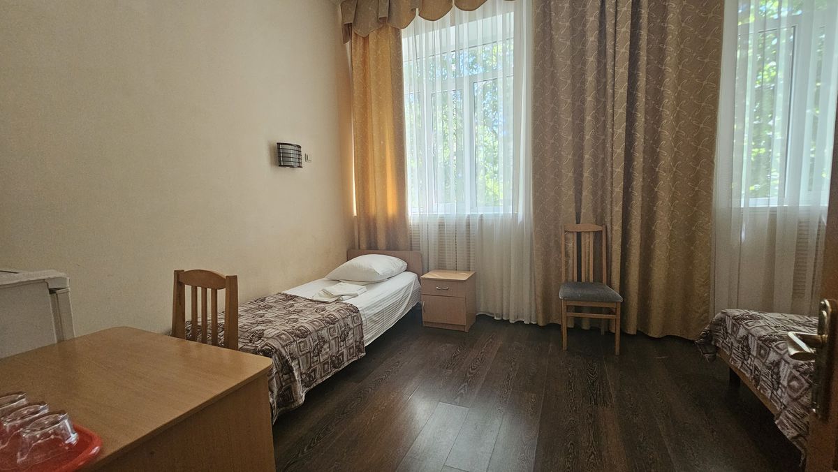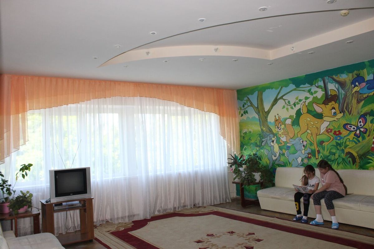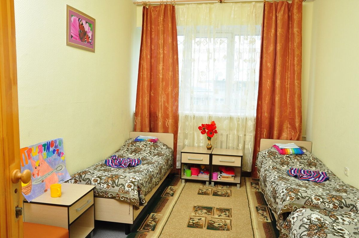 Дети размещаются в 2-, 3- и 5-местных номерах. Санузлы и душевые комнаты расположены на этажах. В номерах предусмотрена удобная мягкая мебель, телевизор и холодильник.