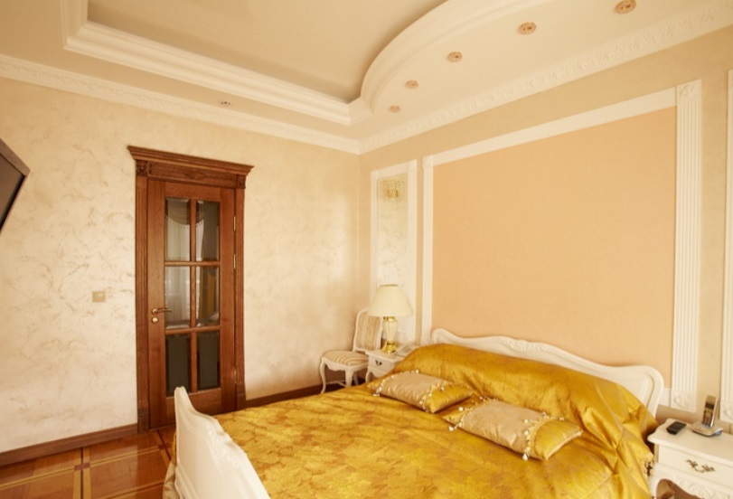 Мебель: вешалка, диван, зеркало, кресла, кровать двуспальная, прикроватные тумбочки, стол, столик журнальный, стулья, шкаф.