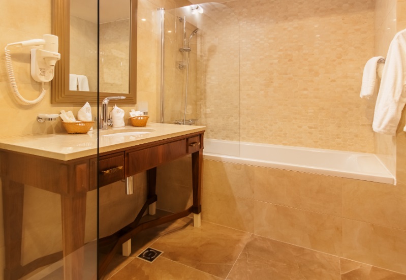 Санузел: с ванной или душевой кабиной, туалетные принадлежности, фен.