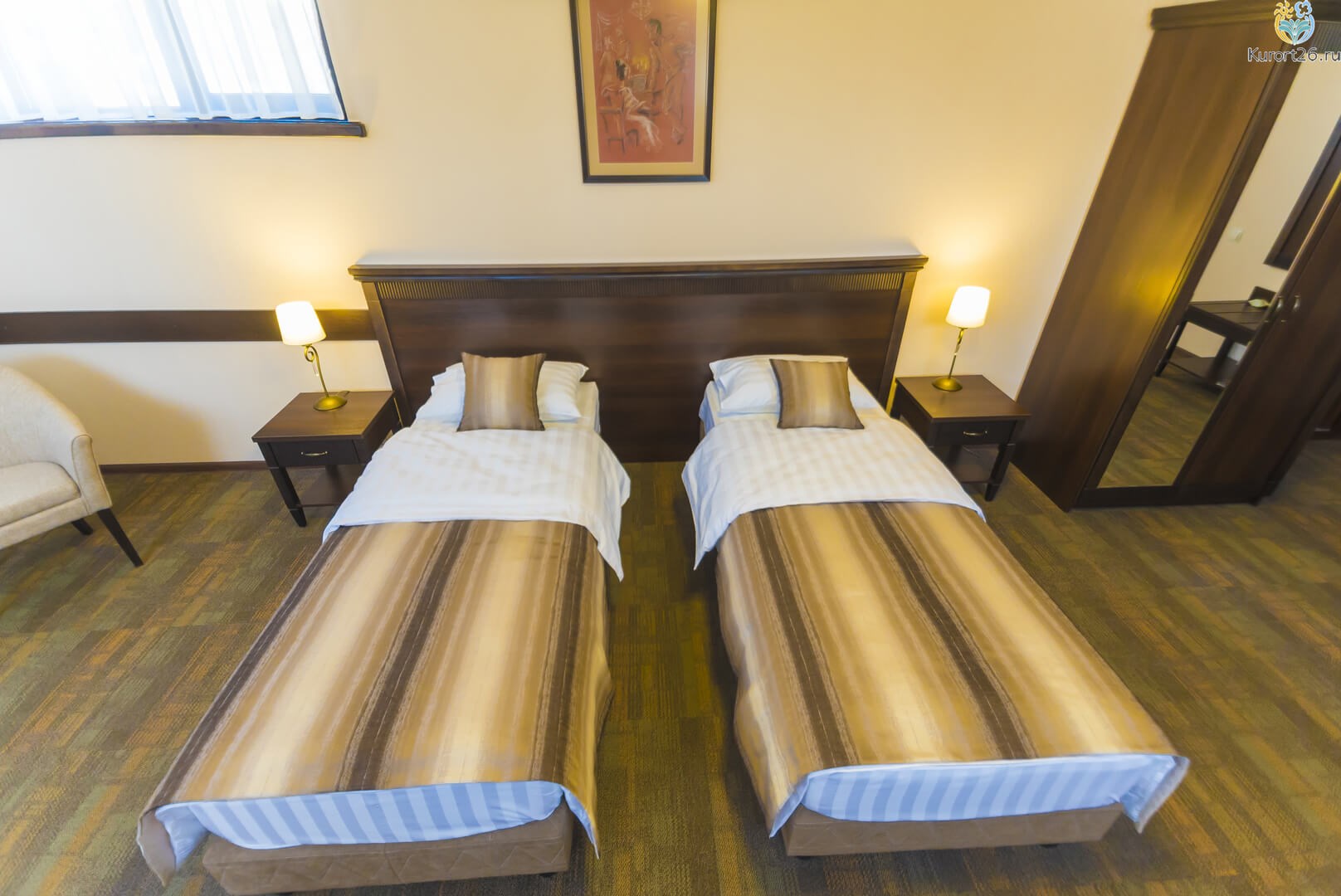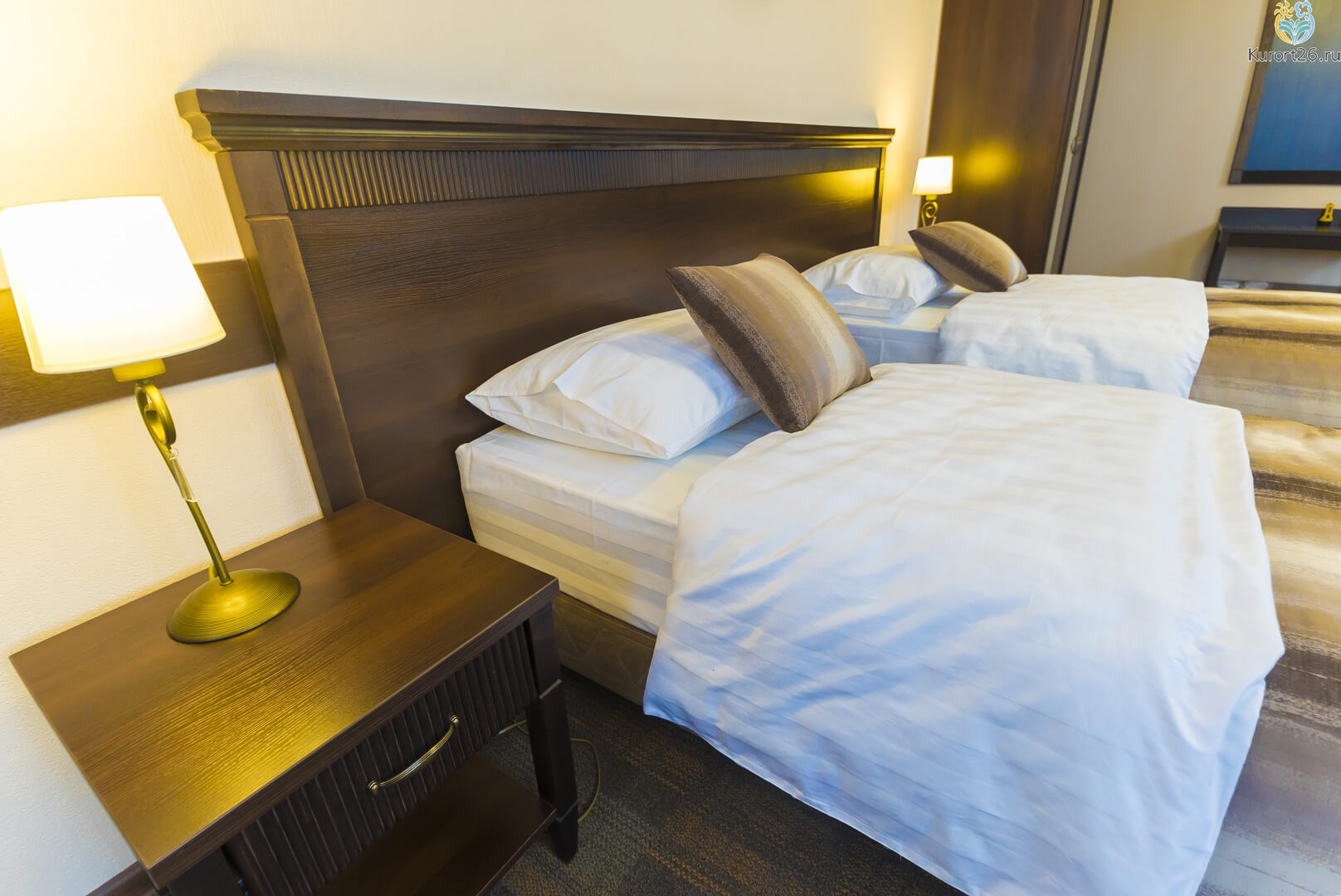 - 2-местные стандартные номера с двумя односпальными или одной двуспальной кроватью.