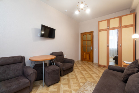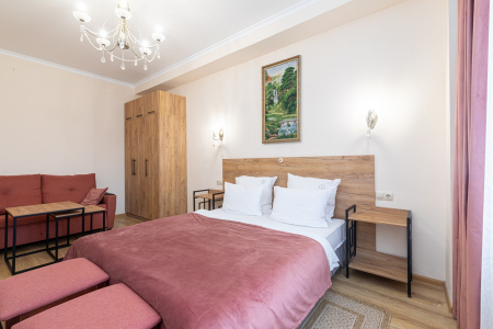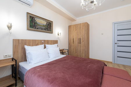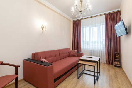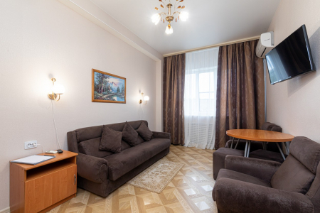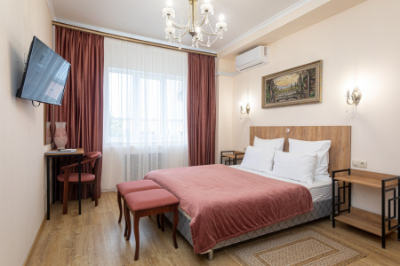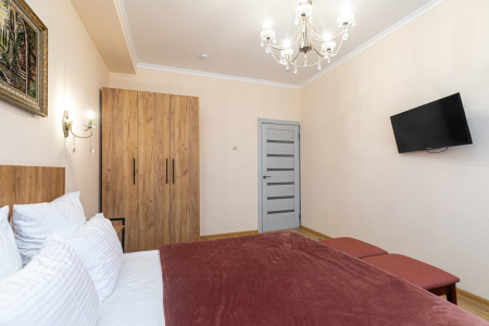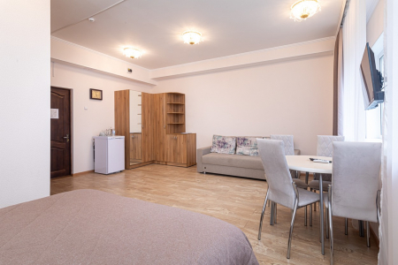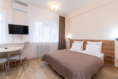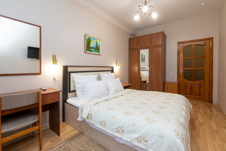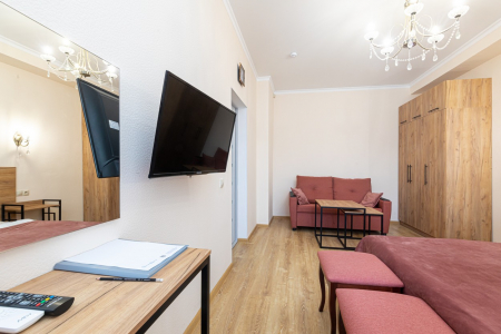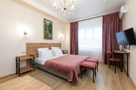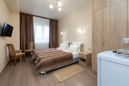 Оборудование: Телевизор, холодильник, чайник электрический, чайный набор, кондиционер, Wi-Fi, сейф, кнопка вызова персонала.